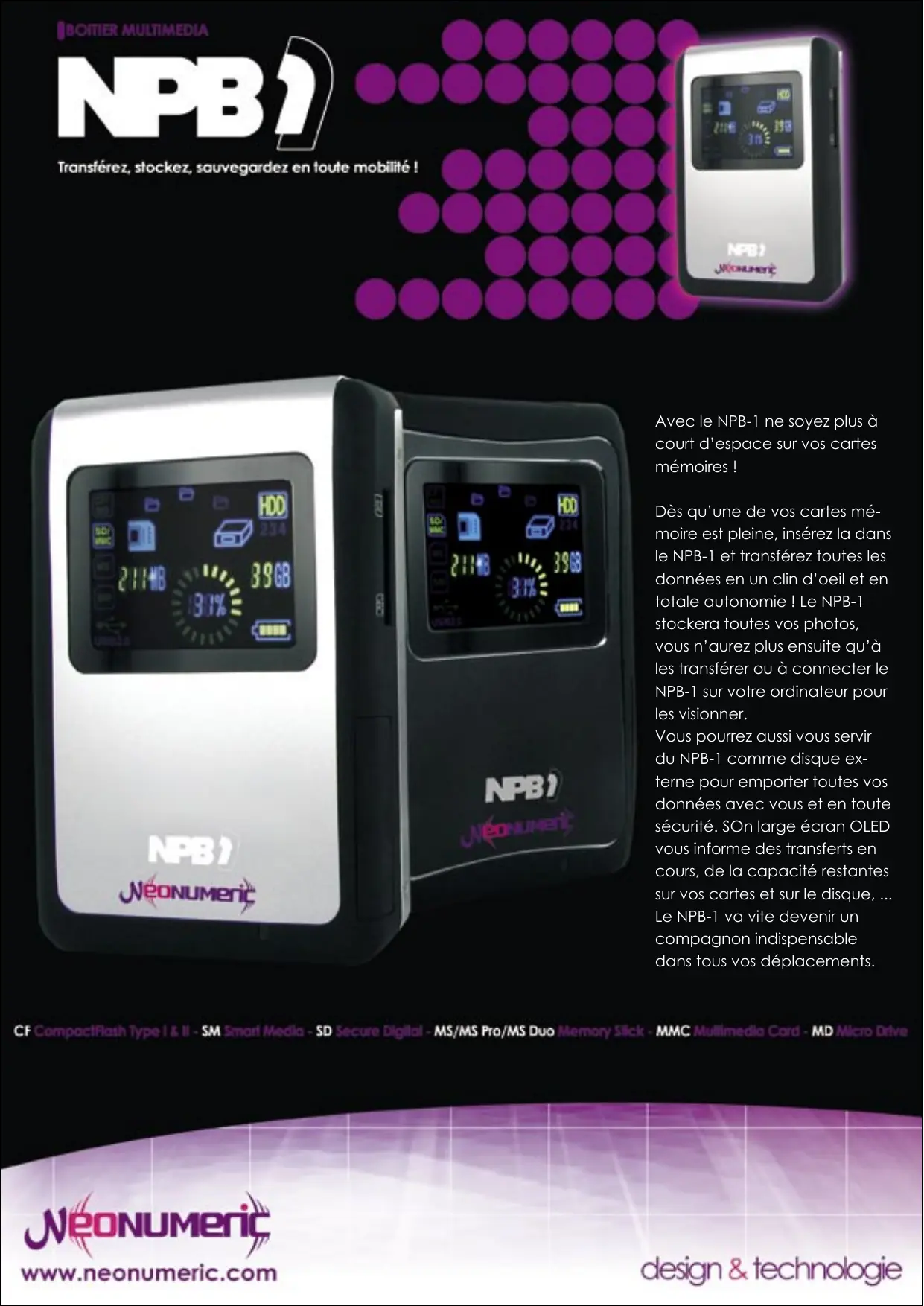 Avec le NPB-1 ne soyez plus à court d'espace sur vos cartes mémoires!