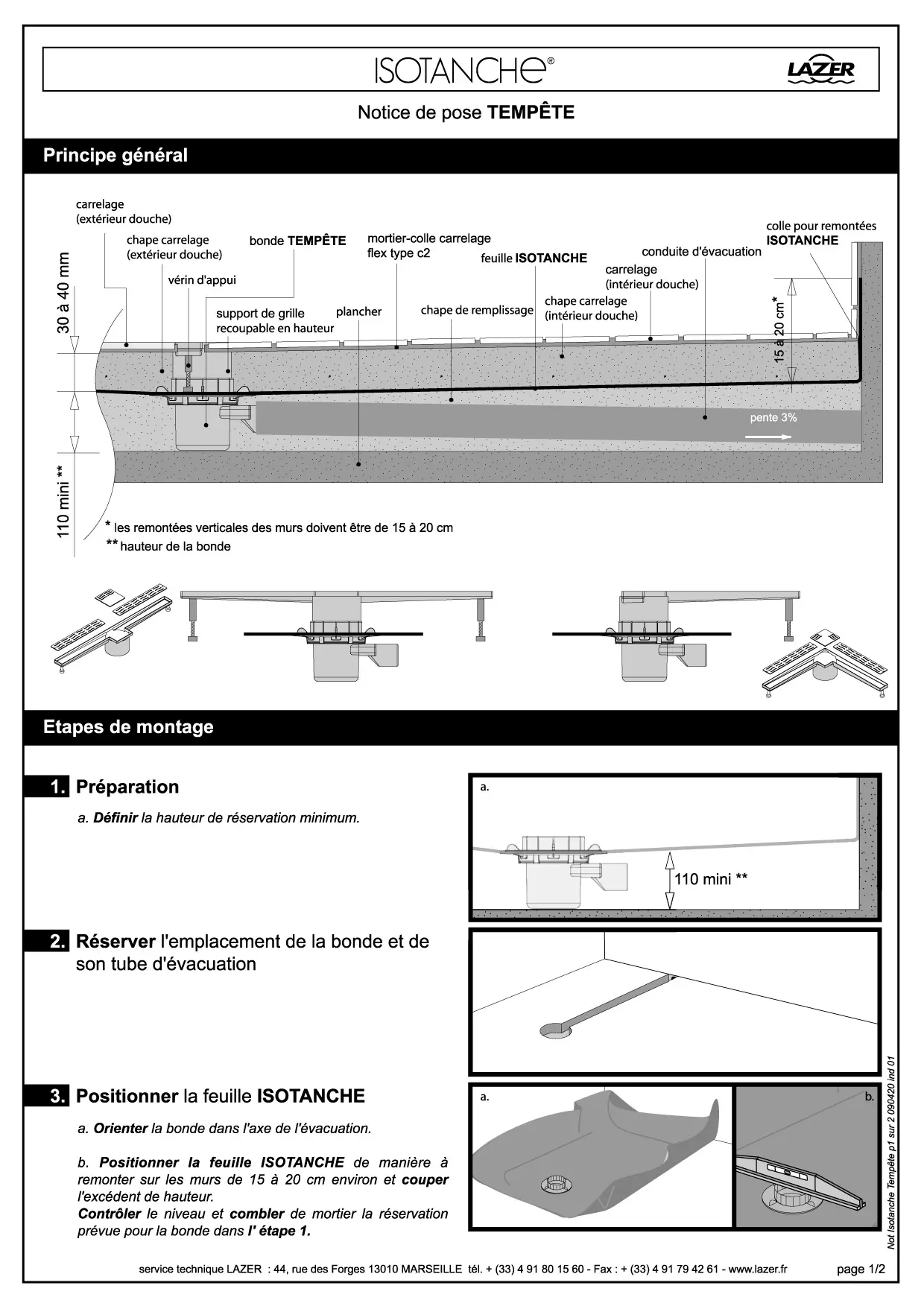 TEMPETE - Évacuation d'eau LAZER - Notice d'utilisation et mode d'emploi gratuit