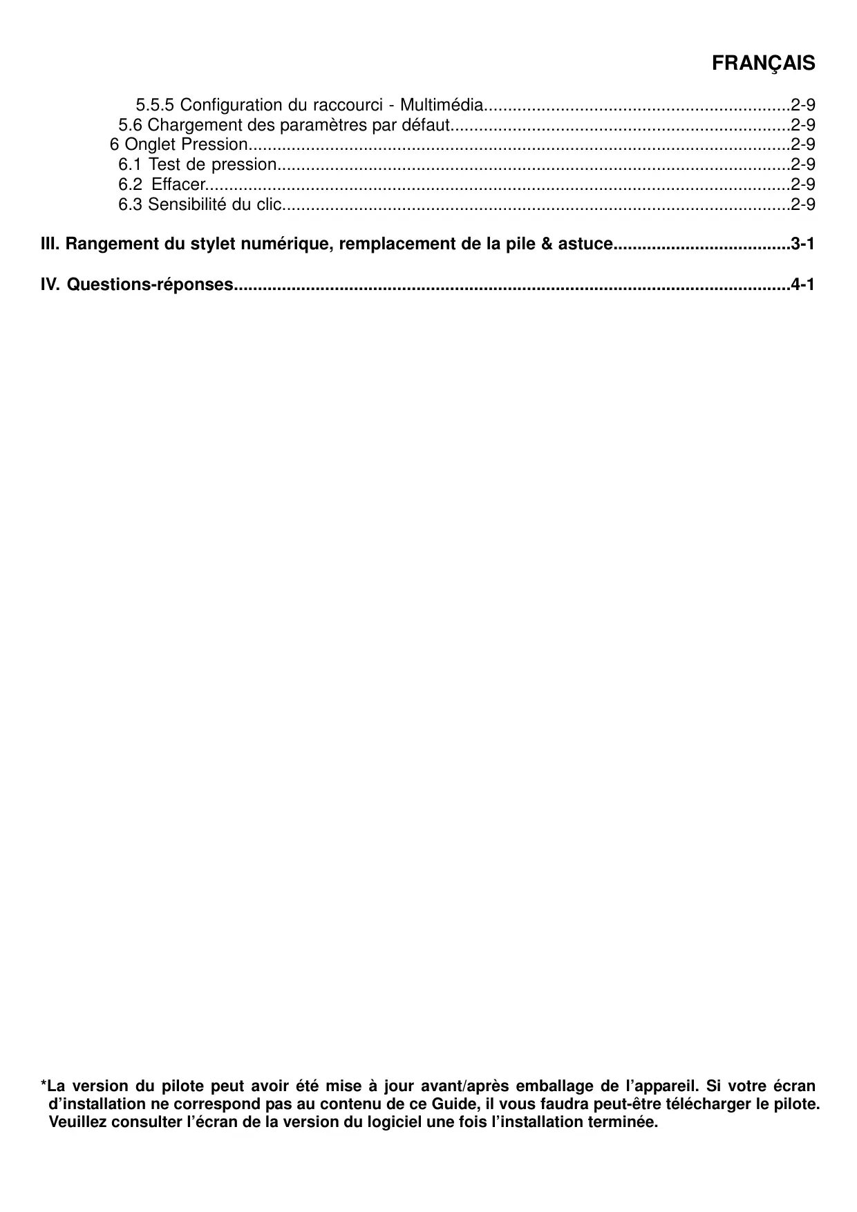 III. Rangement du stylet numérique, remplacement de la pile & astuce.....................................3-1