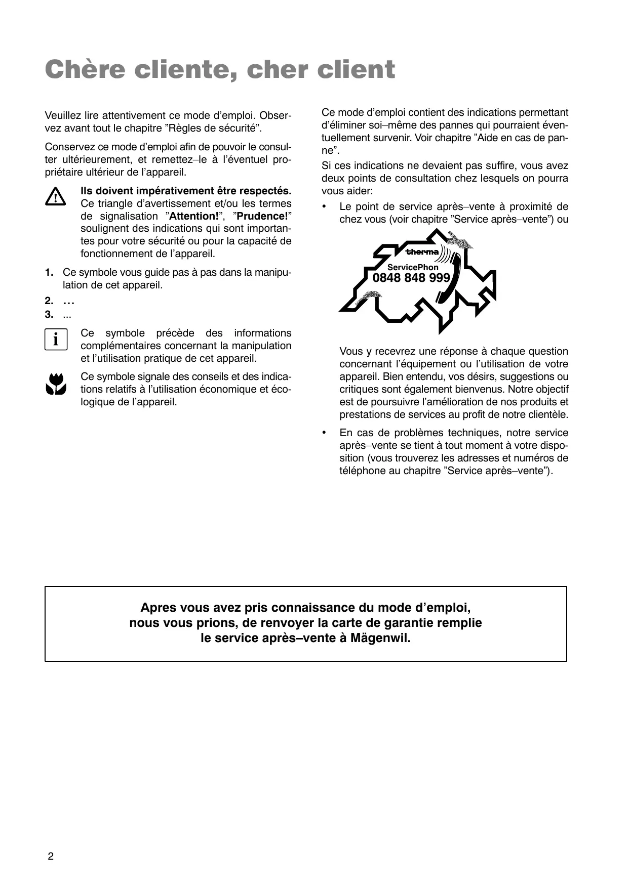 Apres vous avez pris connaissance du mode d'emploi, nous vous prions, de renvoyer la carte de garantie remplie le service après-vente à Mägenwil.