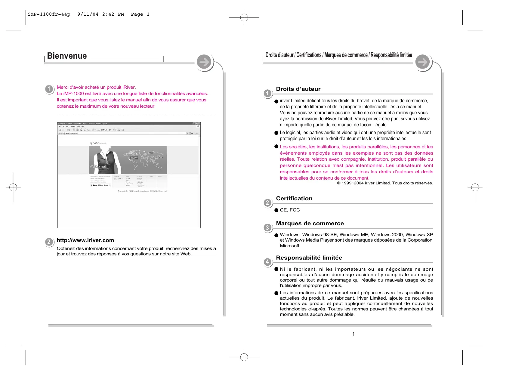© 1999~2004 iriver Limited. Tous droits réservés.