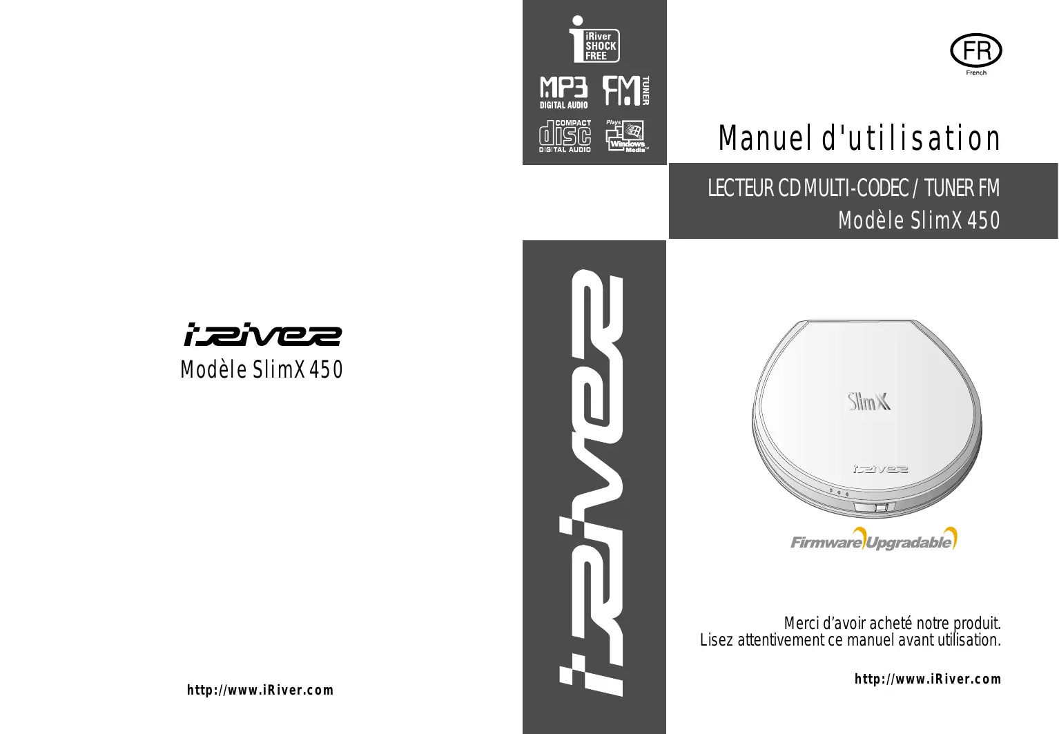 Modèle SlimX 450 IVe Modèle SlimX 450 Firmware)Upgradable) . . Merci d'avoir acheté notre produit. Lisez attentivement ce manuel avant utilisation. . http://wWww.iRiver.com http://Www.iRiver.com