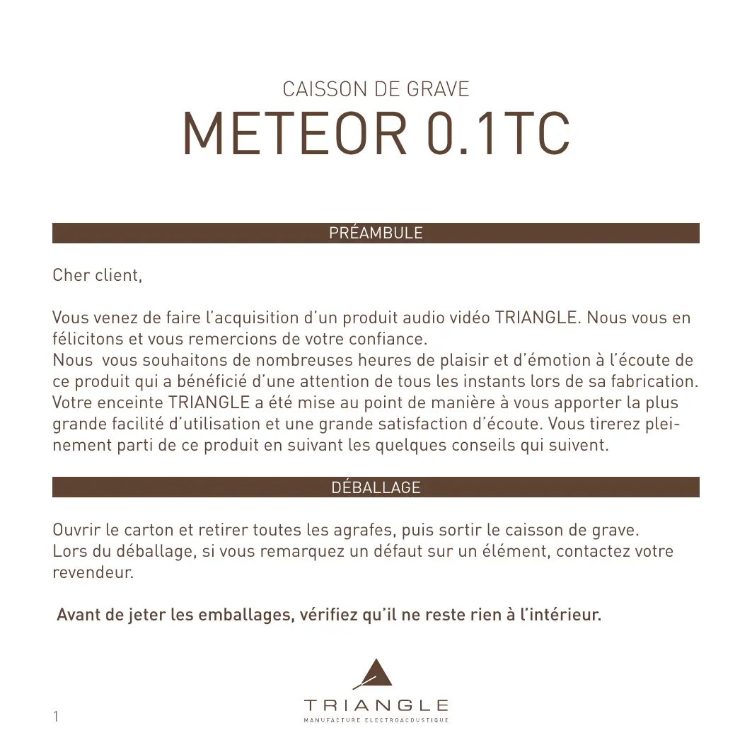 METEOR 0.5, METEOR 0.5 - Haut-parleur TRIANGLE - Notice d'utilisation et mode d'emploi gratuit