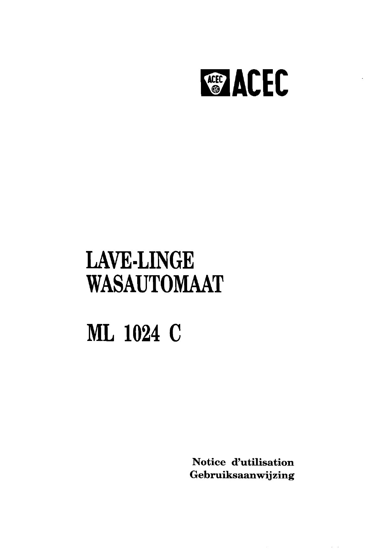ML1024C - Machine à laver ACEC - Notice d'utilisation et mode d'emploi gratuit