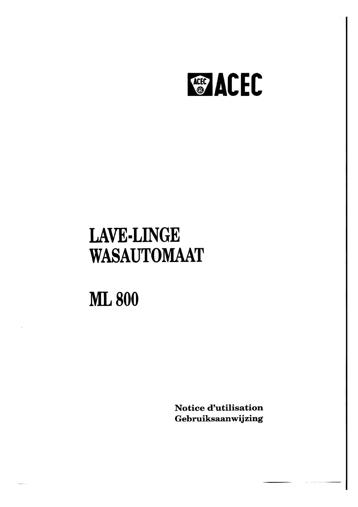 ML800 - Machine à laver ACEC - Notice d'utilisation et mode d'emploi gratuit