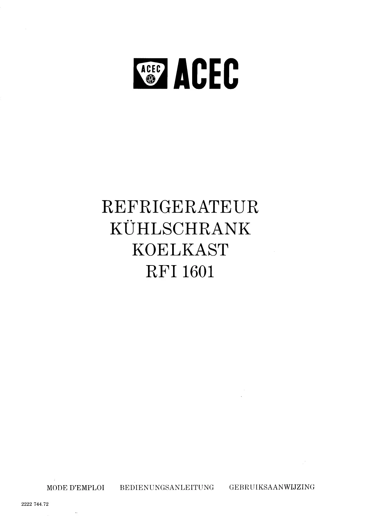 RFI1601 - Réfrigérateur ACEC - Notice d'utilisation et mode d'emploi gratuit