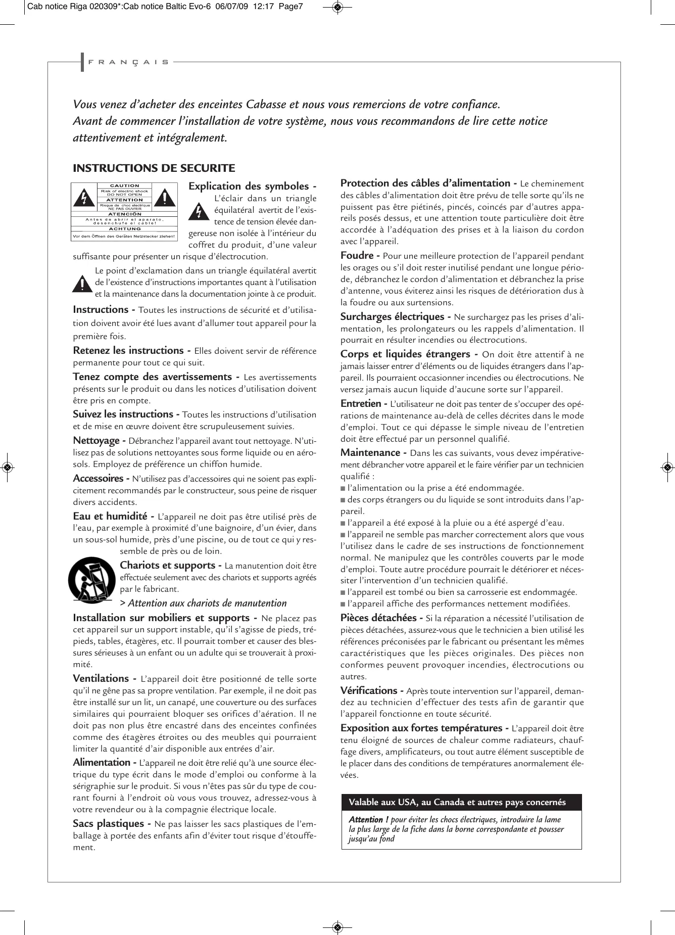 MODE D'EMPLOI RIGA CABASSE