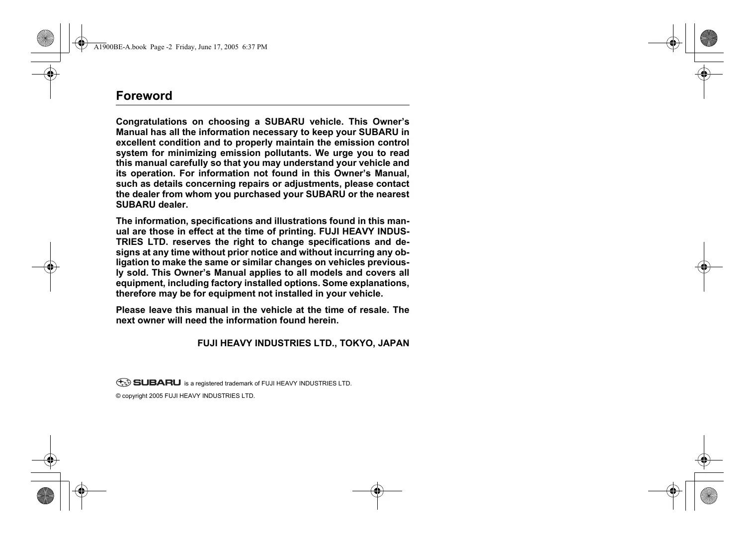 Retrouvez gratuitement la notice de l'appareil IMPREZA SUBARU au format PDF.