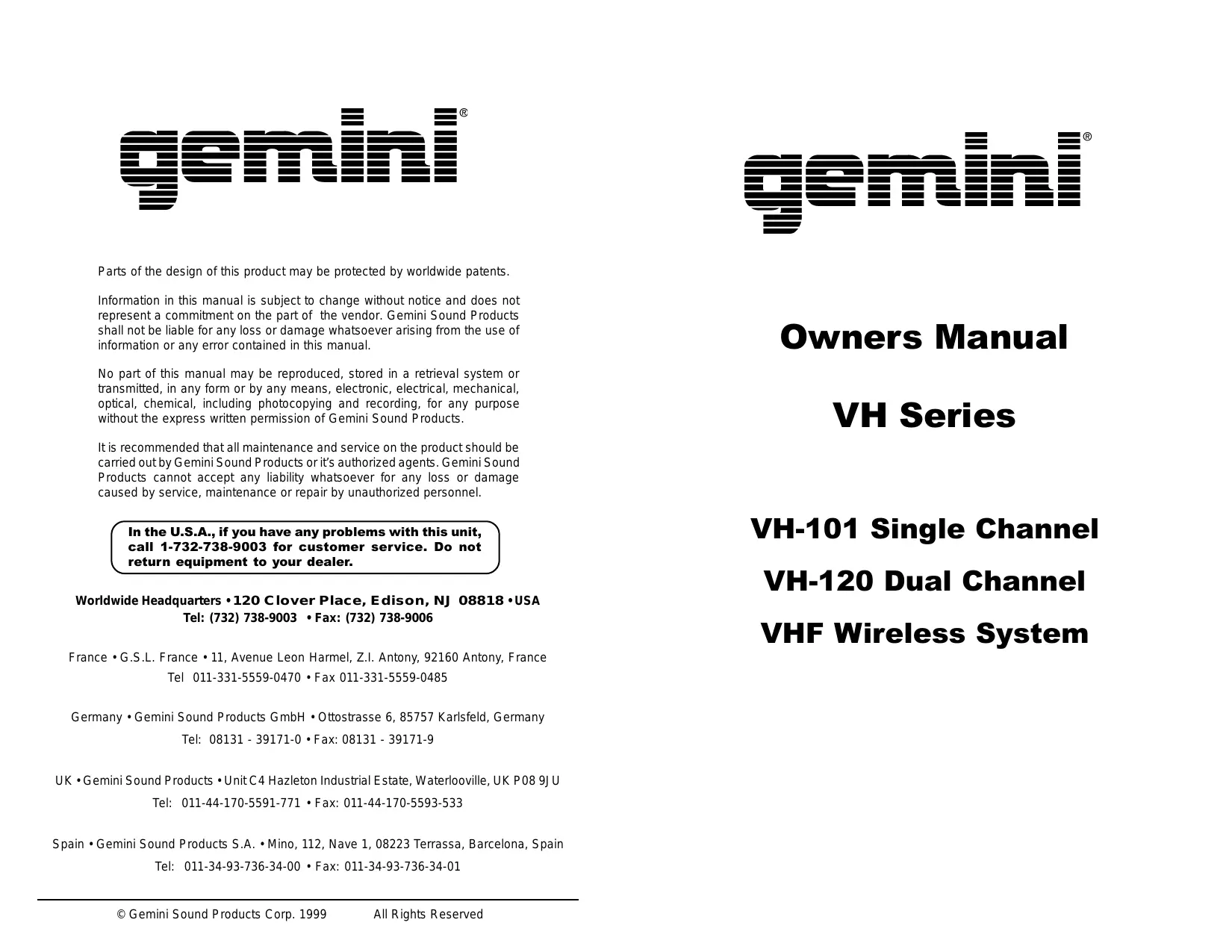 VH-120 - GEMINI - Notice d'utilisation et mode d'emploi gratuit