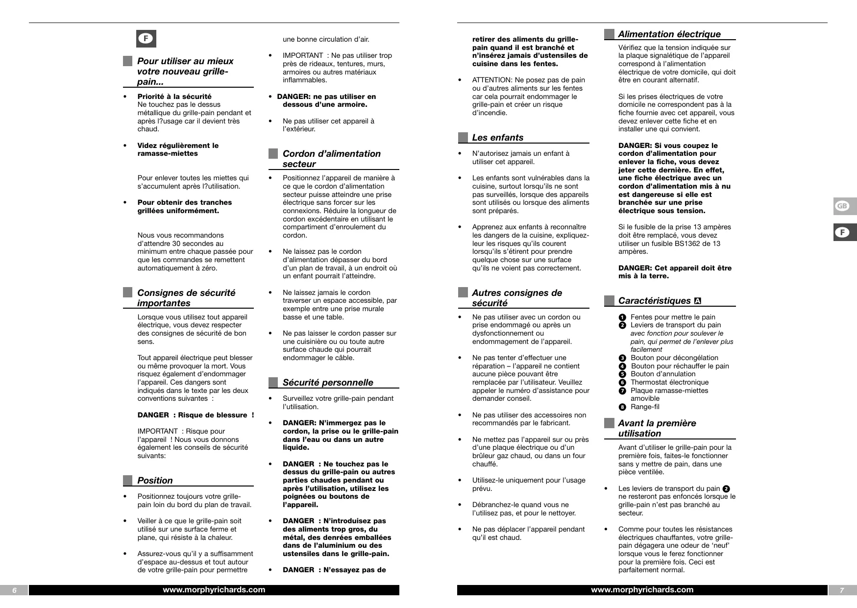 1 Les produits Morphy Richards sont conçus pour uneusage exclusivement domestique. Morphy Richards s'engage à mener une politique d'amélioration continue en termes de qualité et de conception. Le fabricant se réserve donc le droit de modifier sans prévis la Specification de ses modélles.
