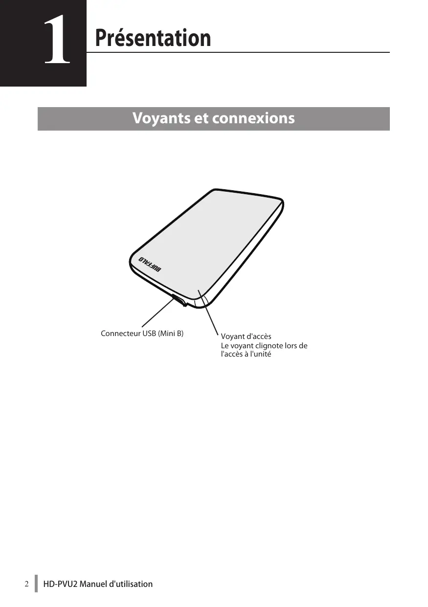 Dispositif de stockage de masse USB Dispositif USB Buffalo HD-PVU2 Dispositif de stockage de masse USB Dispositif USB Buffalo HD-PVU2