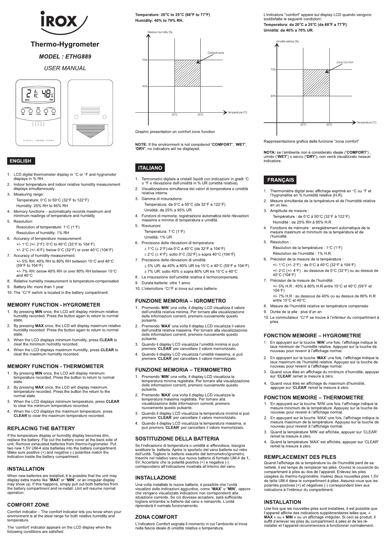 ETHG889 - Thermo-hygromètre IROX - Notice d'utilisation et mode d'emploi gratuit
