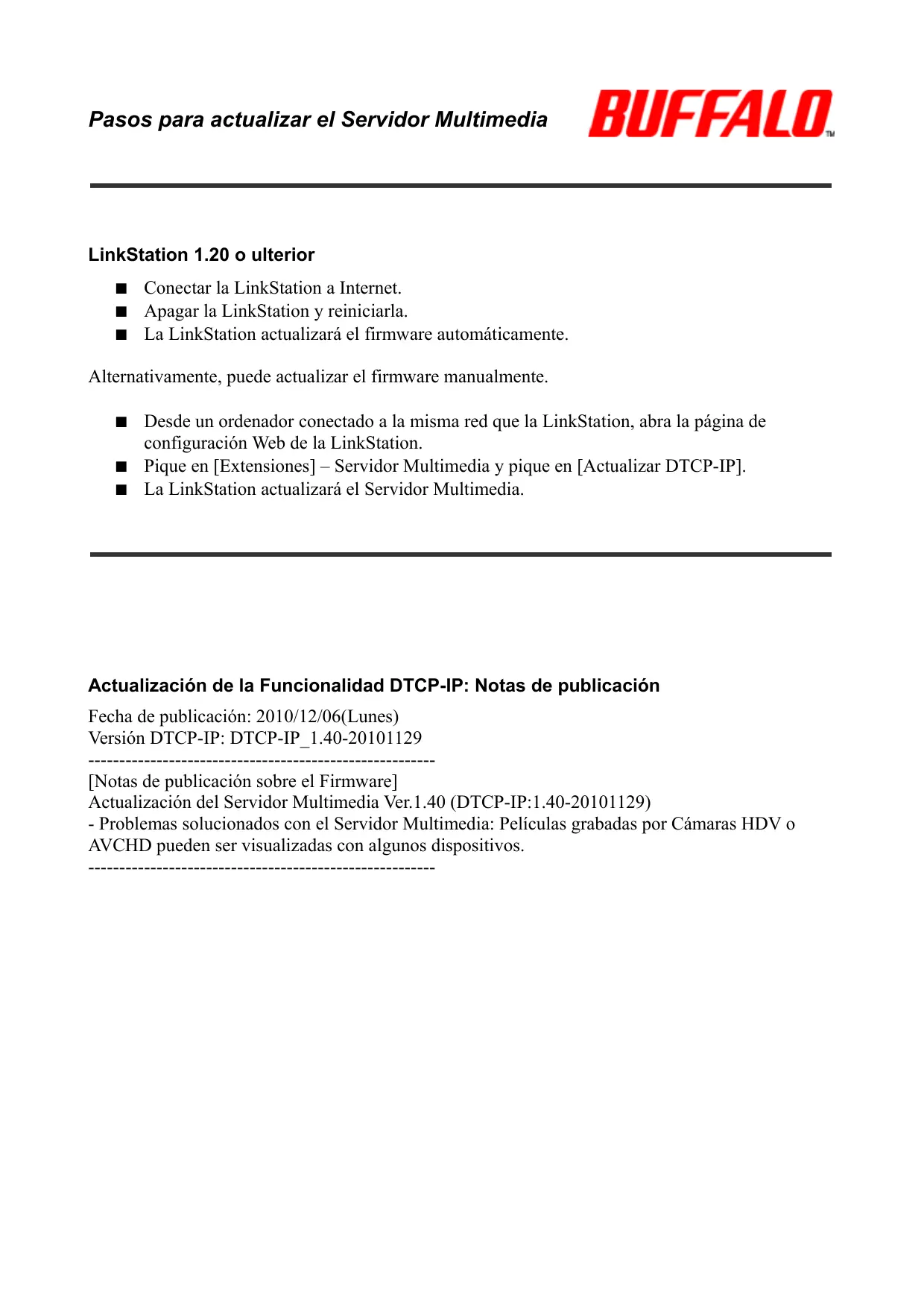 Téléchargez la notice de votre NAS (Network Attached Storage) au format PDF gratuitement ! Retrouvez votre notice LS-WSXL LINKSTATION MINI - BUFFALO et reprennez votre appareil électronique en main. Sur cette page sont publiés tous les documents nécessaires à l'utilisation de votre appareil LS-WSXL LINKSTATION MINI de la marque BUFFALO.