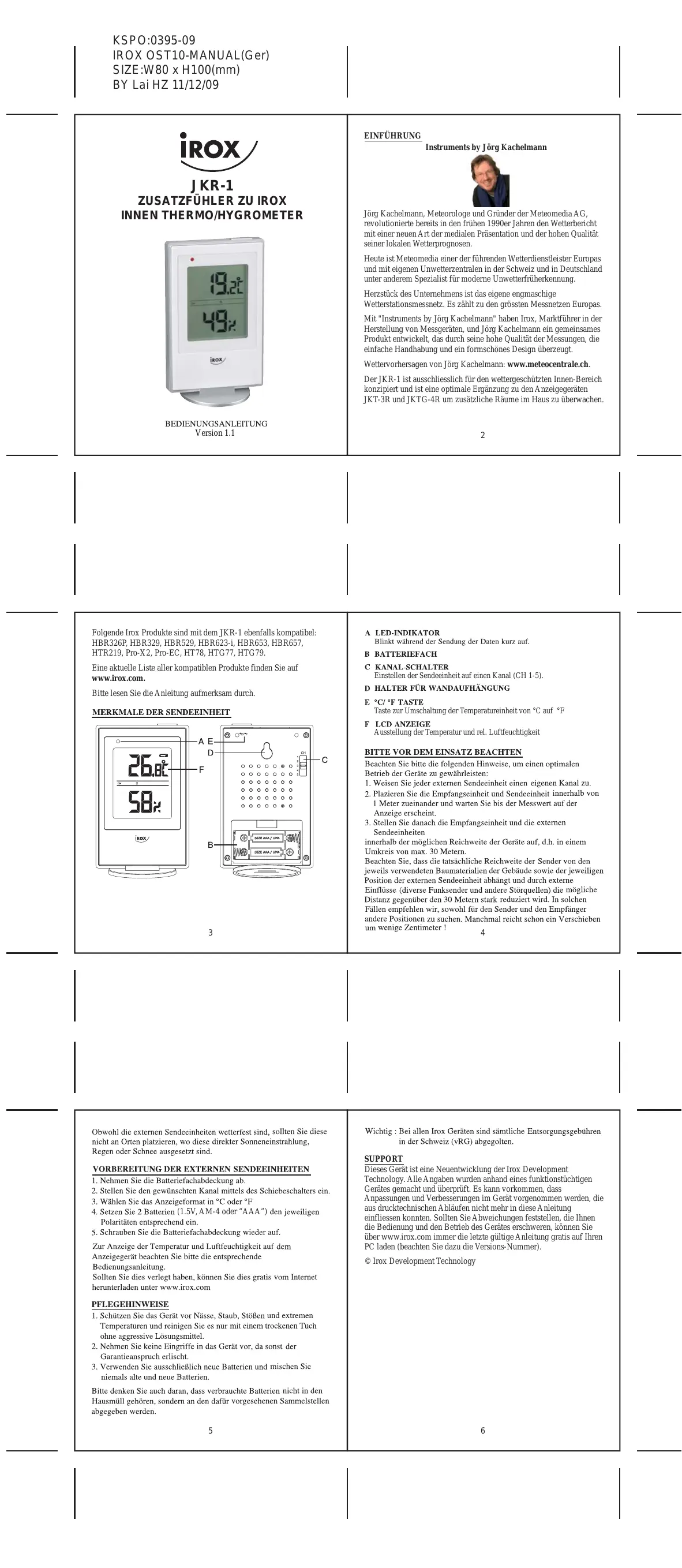 JKR-1 - Thermomètre hygromètre IROX - Notice d'utilisation et mode d'emploi gratuit