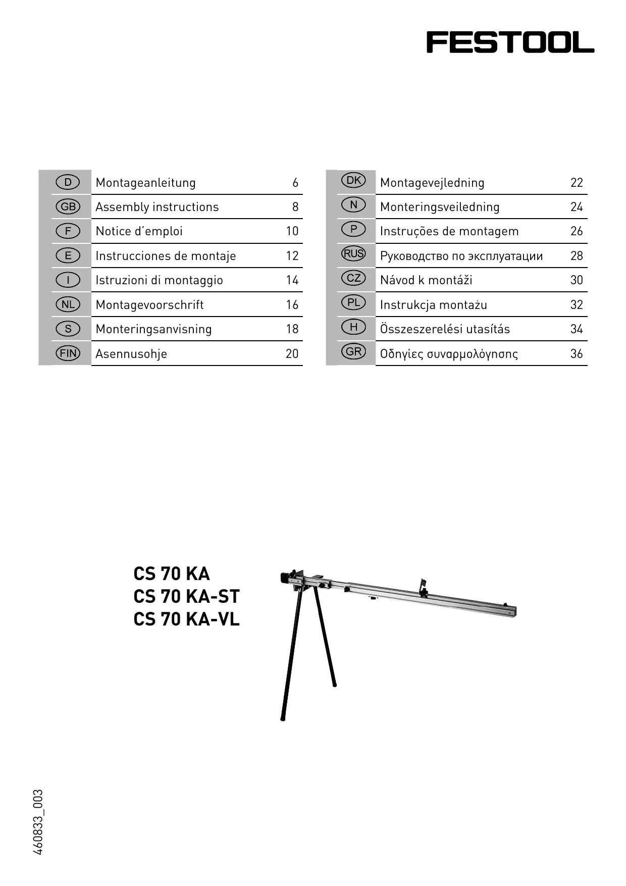 Retrouvez gratuitement la notice de l'appareil CS 70 KA-VL FESTOOL au format PDF.