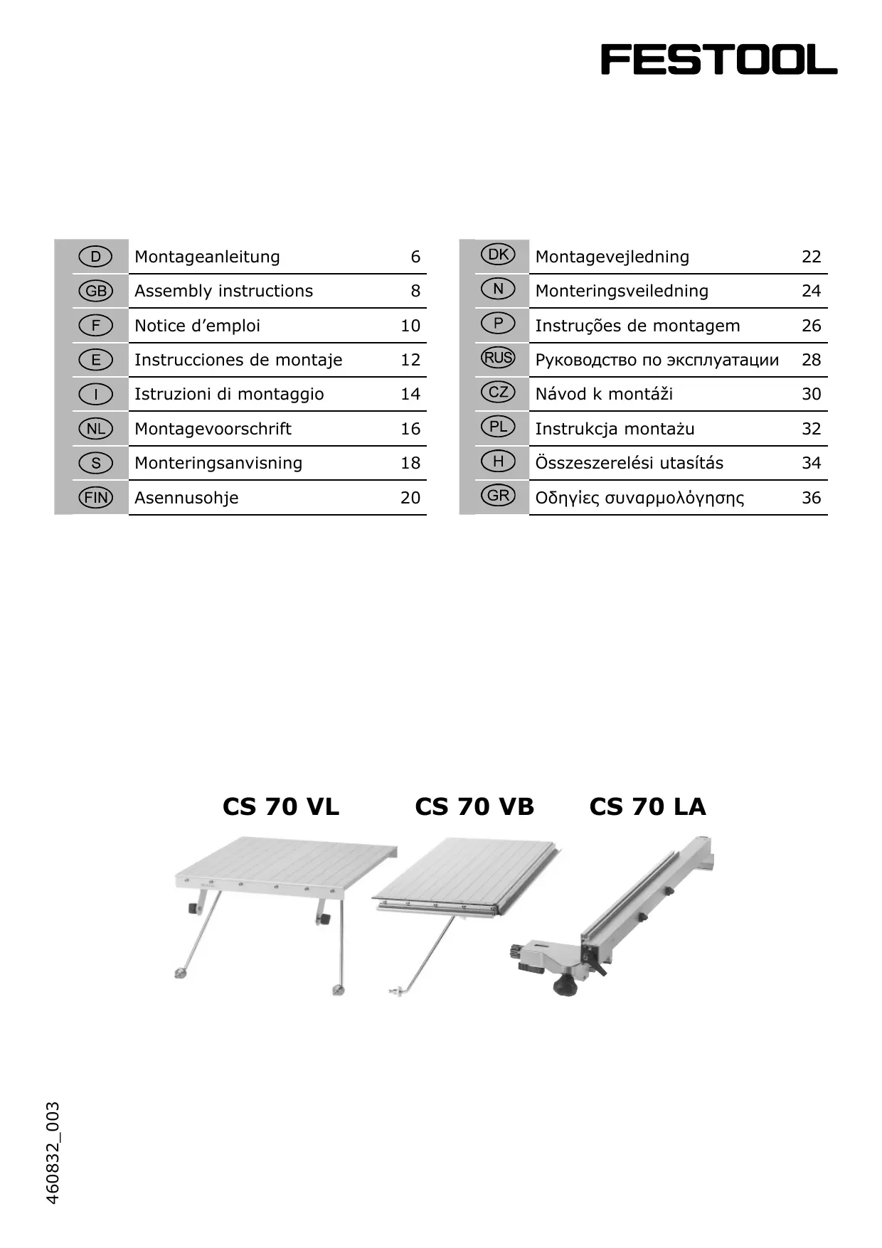 Retrouvez gratuitement la notice de l'appareil CS 70 VB FESTOOL au format PDF.