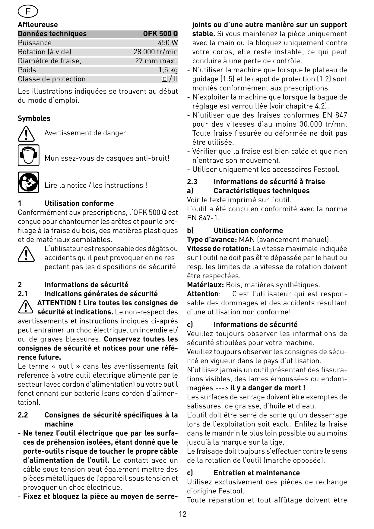 MODE D'EMPLOI OFK 500 Q FESTOOL