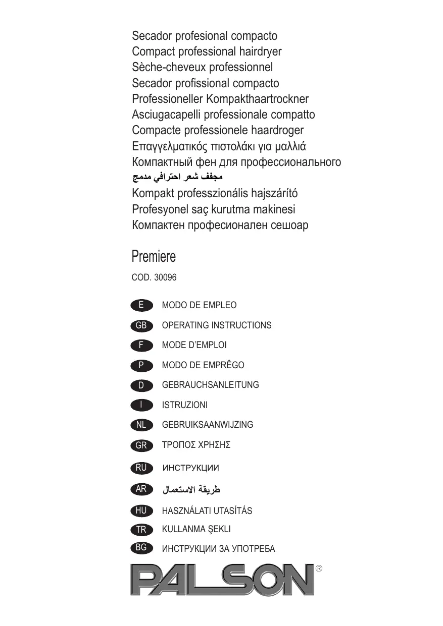 PREMIERE - Sèche cheveux PALSON - Notice d'utilisation et mode d'emploi gratuit