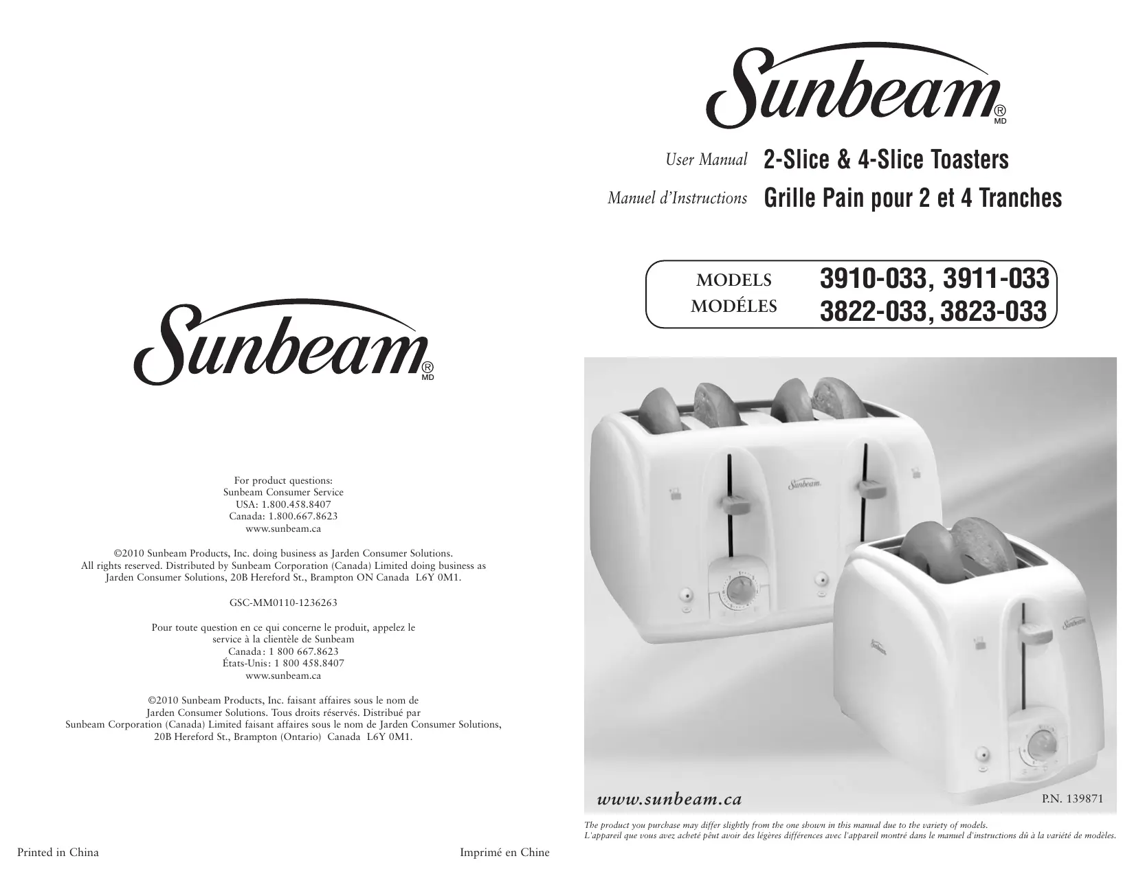 3823-033 - Grille pain SUNBEAM - Notice d'utilisation et mode d'emploi gratuit