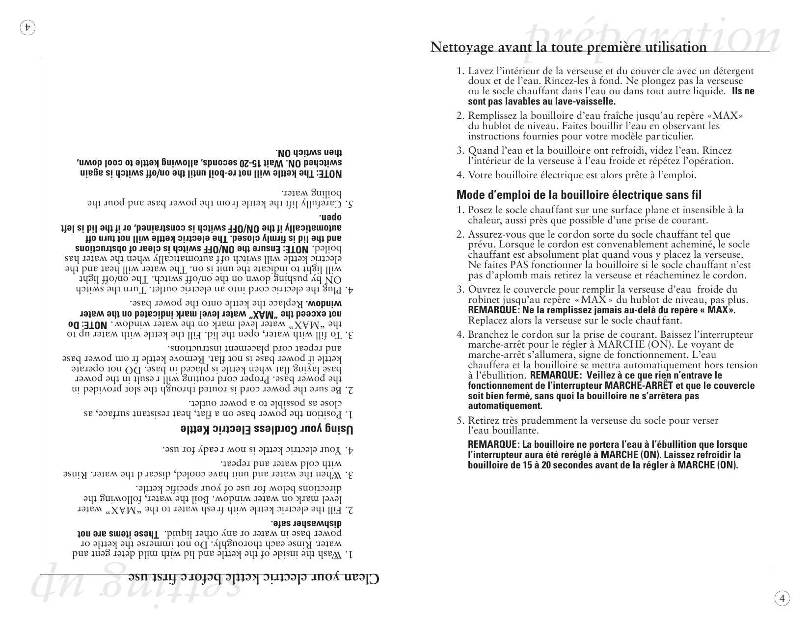 Mode d'emploi de la bouilloire electrique sans fil 4