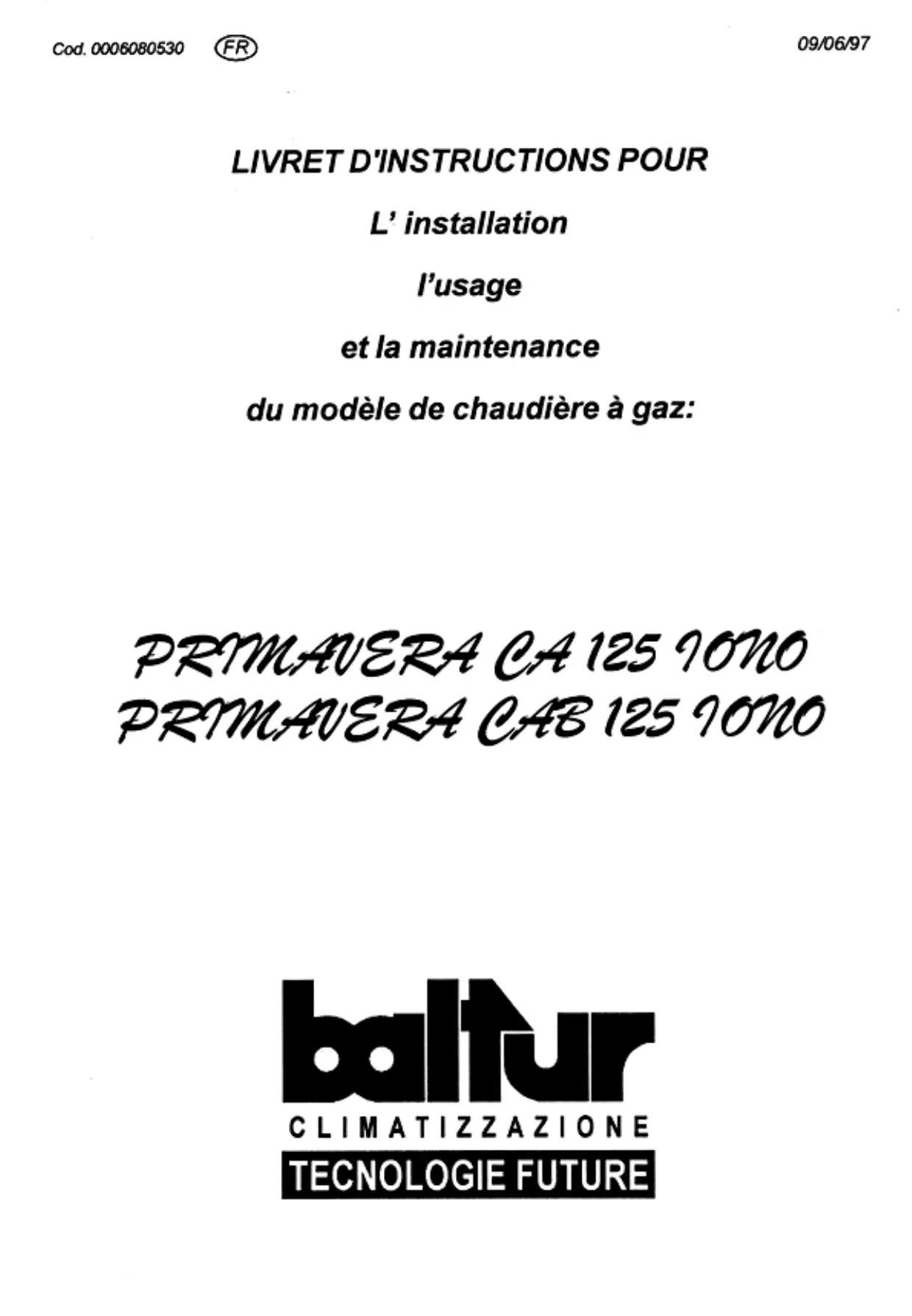 PRIMAVERA CA 125 IONO - Chaudière à gaz BALTUR - Notice d'utilisation et mode d'emploi gratuit