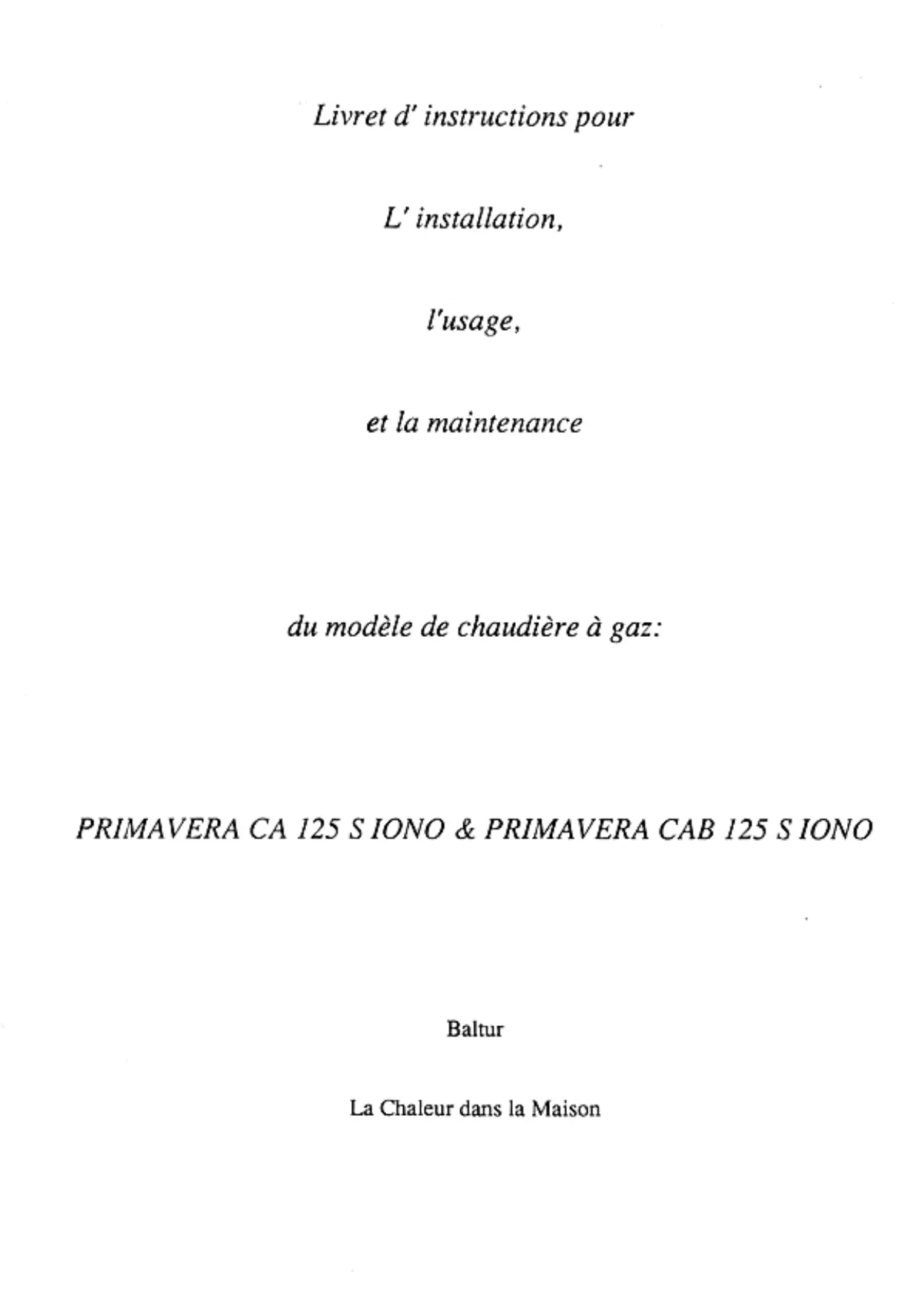 PRIMAVERA CAB 125 S IONO - Chaudière à gaz BALTUR - Notice d'utilisation et mode d'emploi gratuit