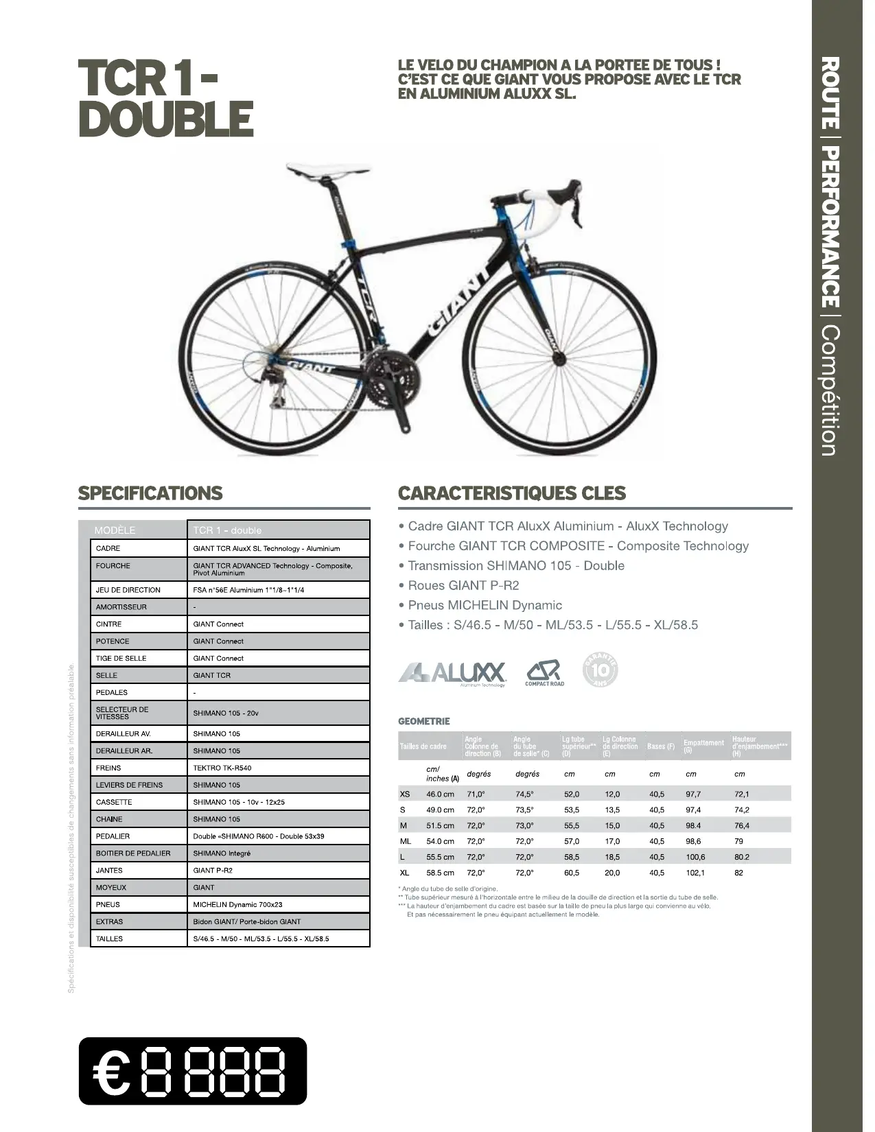TCR 1-DOUBLE - Vélo de route GIANT BICYCLES - Notice d'utilisation et mode d'emploi gratuit
