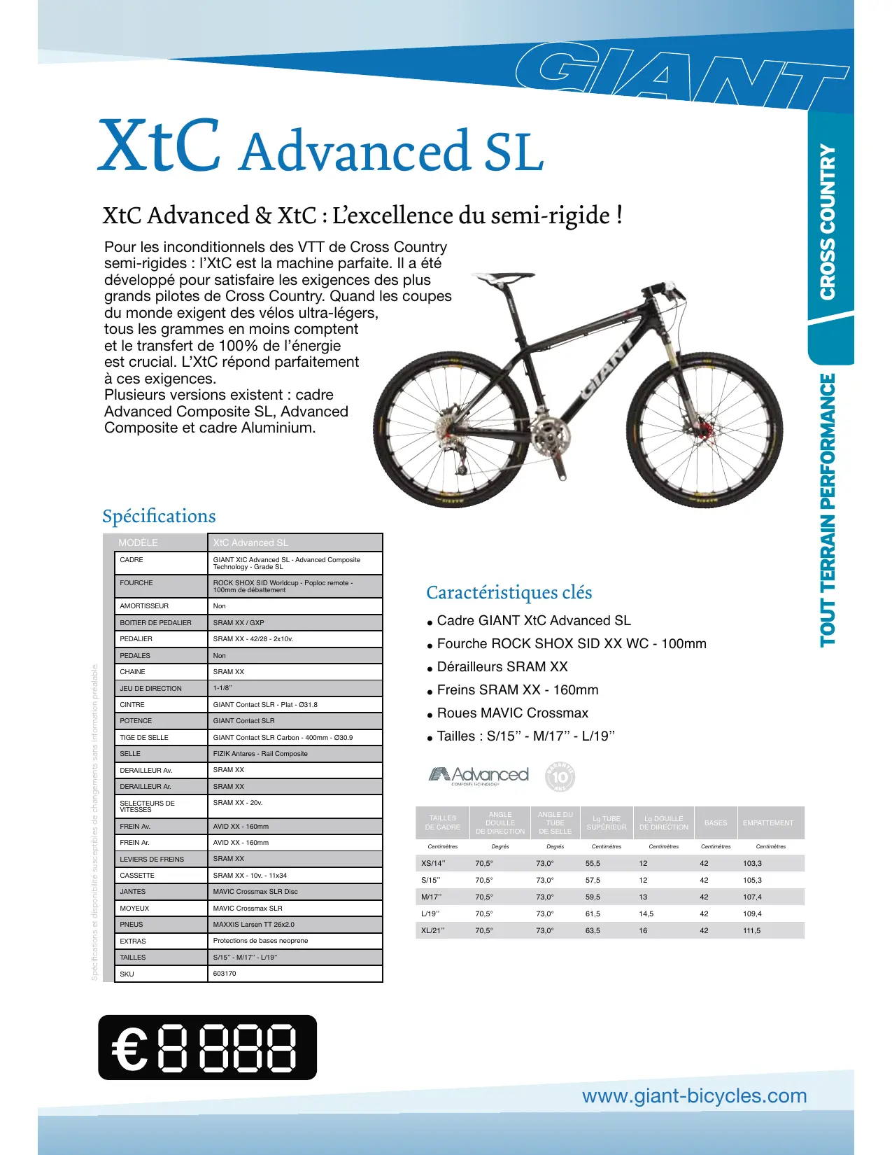 Retrouvez gratuitement la notice de l'appareil XTC ADVANCED SL GIANT BICYCLES au format PDF.