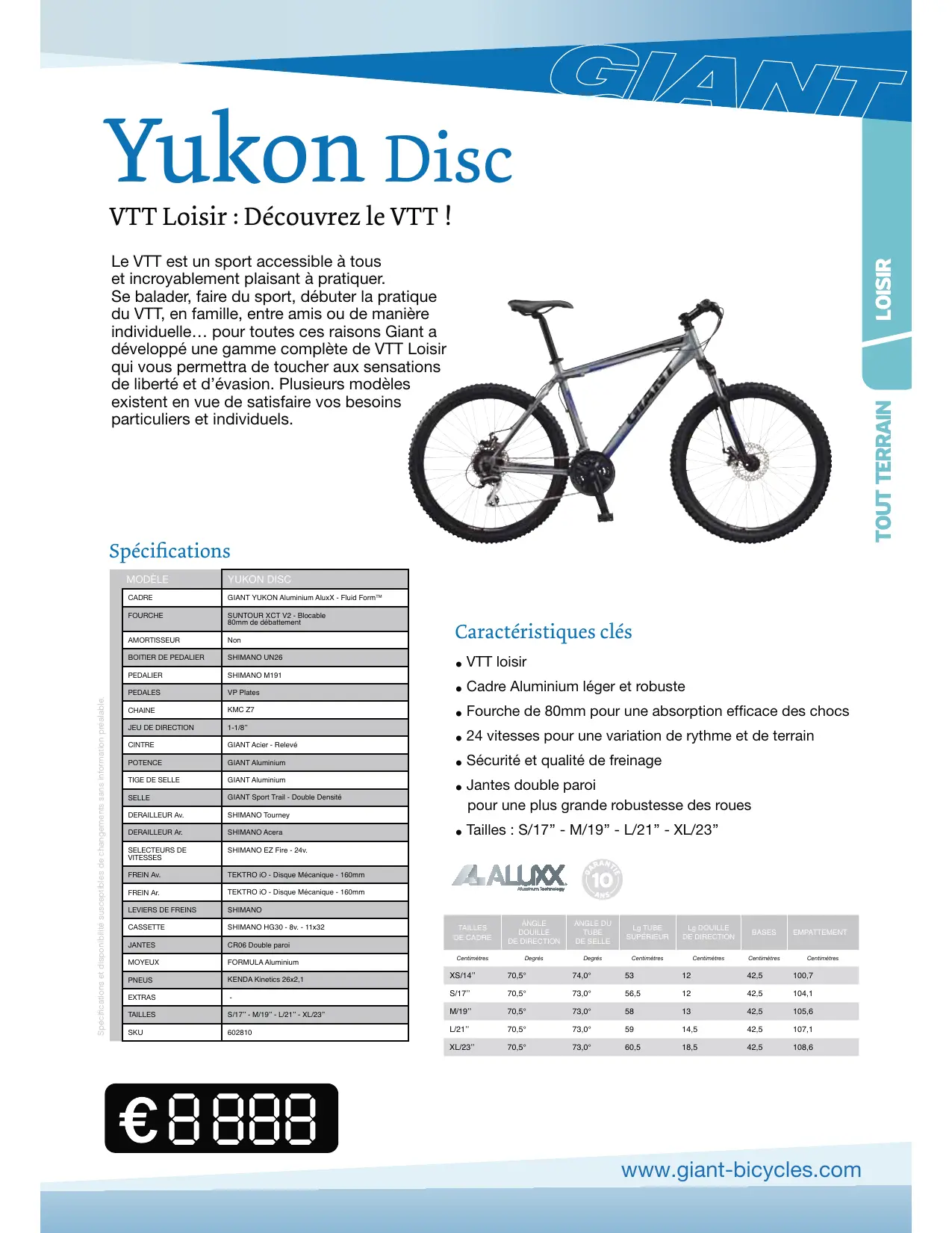 YUKON DISC - Vélo tout terrain GIANT BICYCLES - Notice d'utilisation et mode d'emploi gratuit