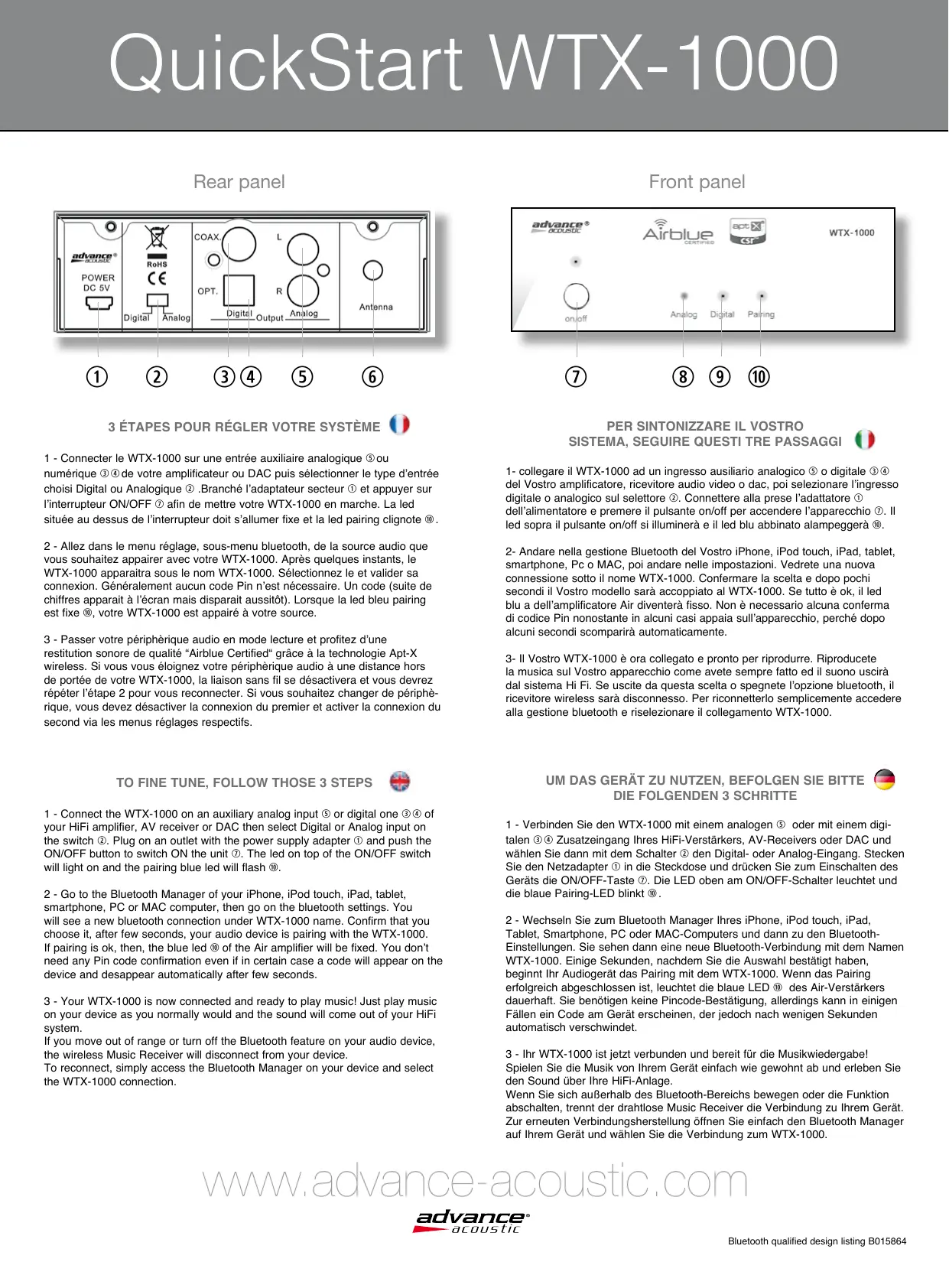 Retrouvez gratuitement la notice de l'appareil WTX-1000 ADVANCE au format PDF.