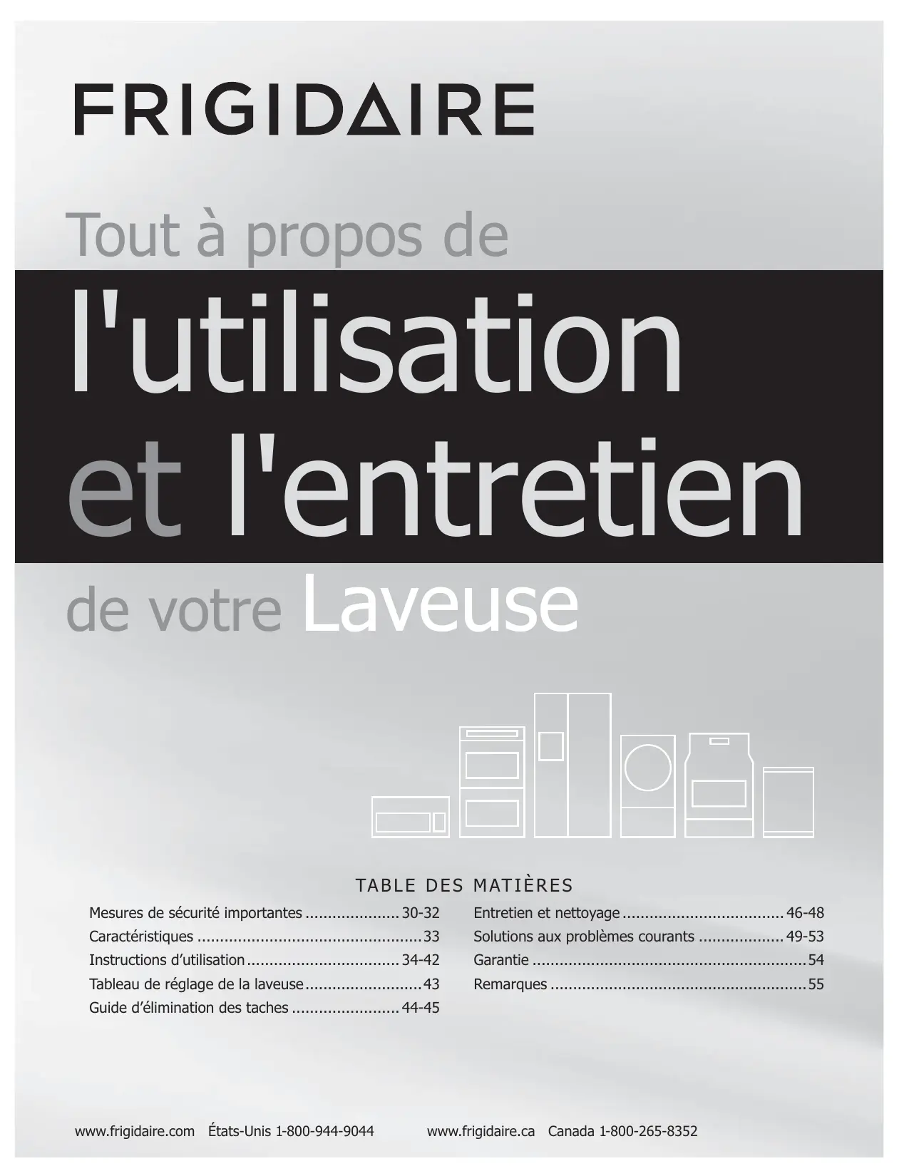 - Guide d’élimination des taches -45 www.frigidaire.com États-Unis 1-800-944-9044 www.frigidaire.ca Canada 1-800-265-8352 p. 44