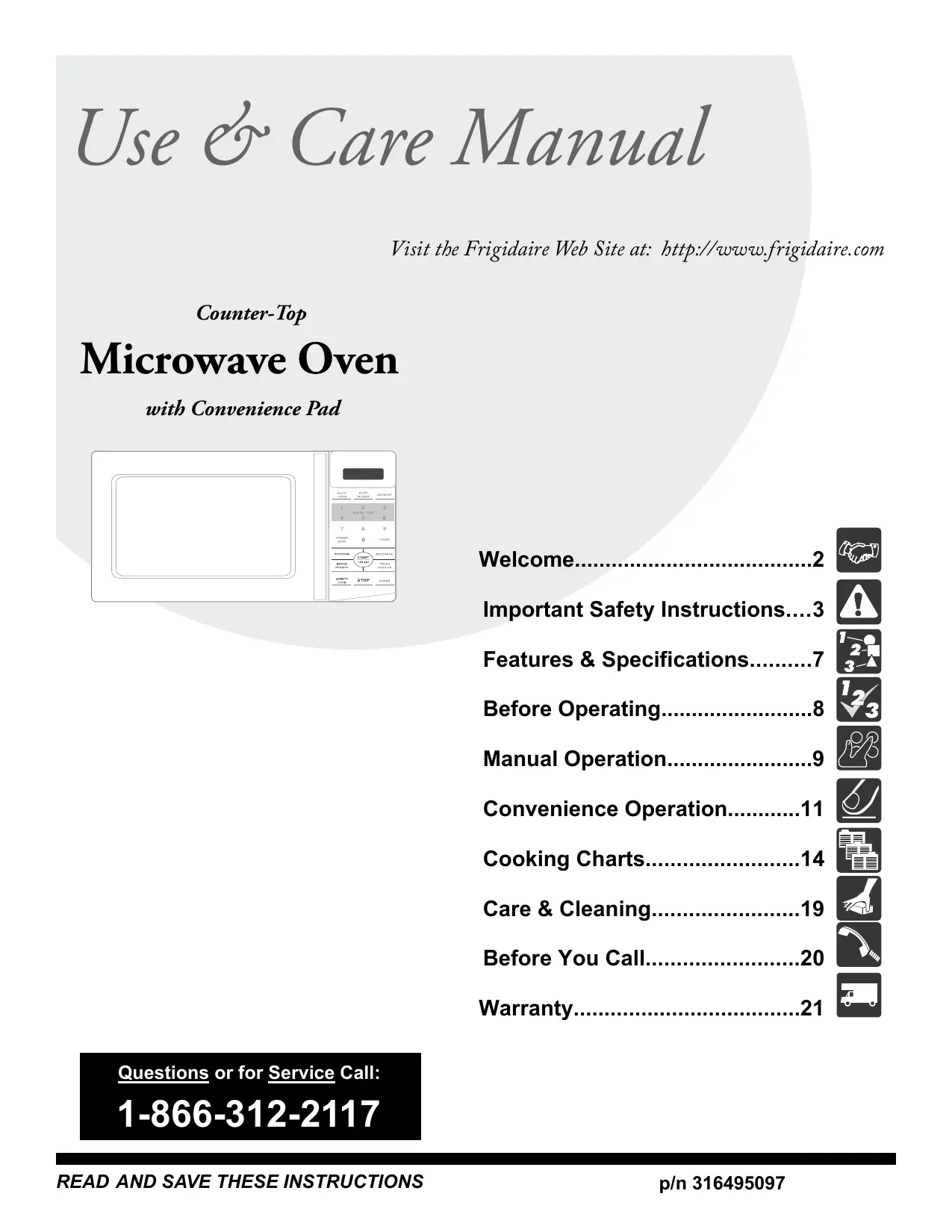 FFCM1134L - Micro-ondes FRIGIDAIRE - Notice d'utilisation et mode d'emploi gratuit