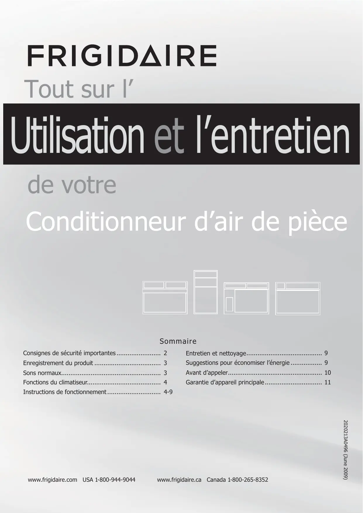Le present MANUEL D'UTILISATION ET D'ENTRETIEN fournit des instructions de fonctionnement spécifique à votre modèle. Utilisez le conditionneur d'air de piece uniquement comme indiqué dans ce manuel. Ces instructions n'ont pas pour but de couvir toutes les conditions et situations possibles. Vous doivent faire preuve de bon sens et de prudence lorsque vous installez, utilisez et entendez tout apparéil.