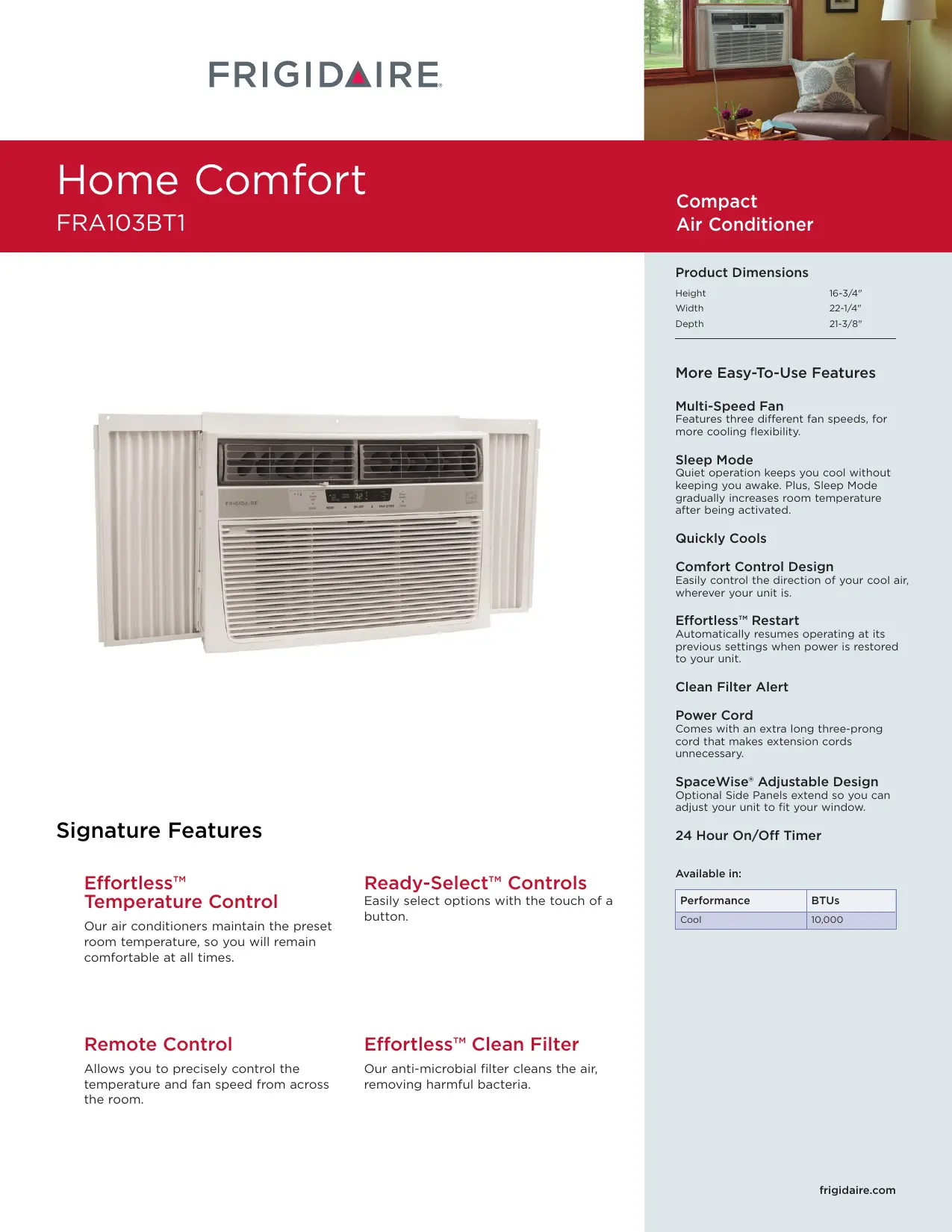 Retrouvez gratuitement la notice de l'appareil FRA103BT1 FRIGIDAIRE au format PDF.