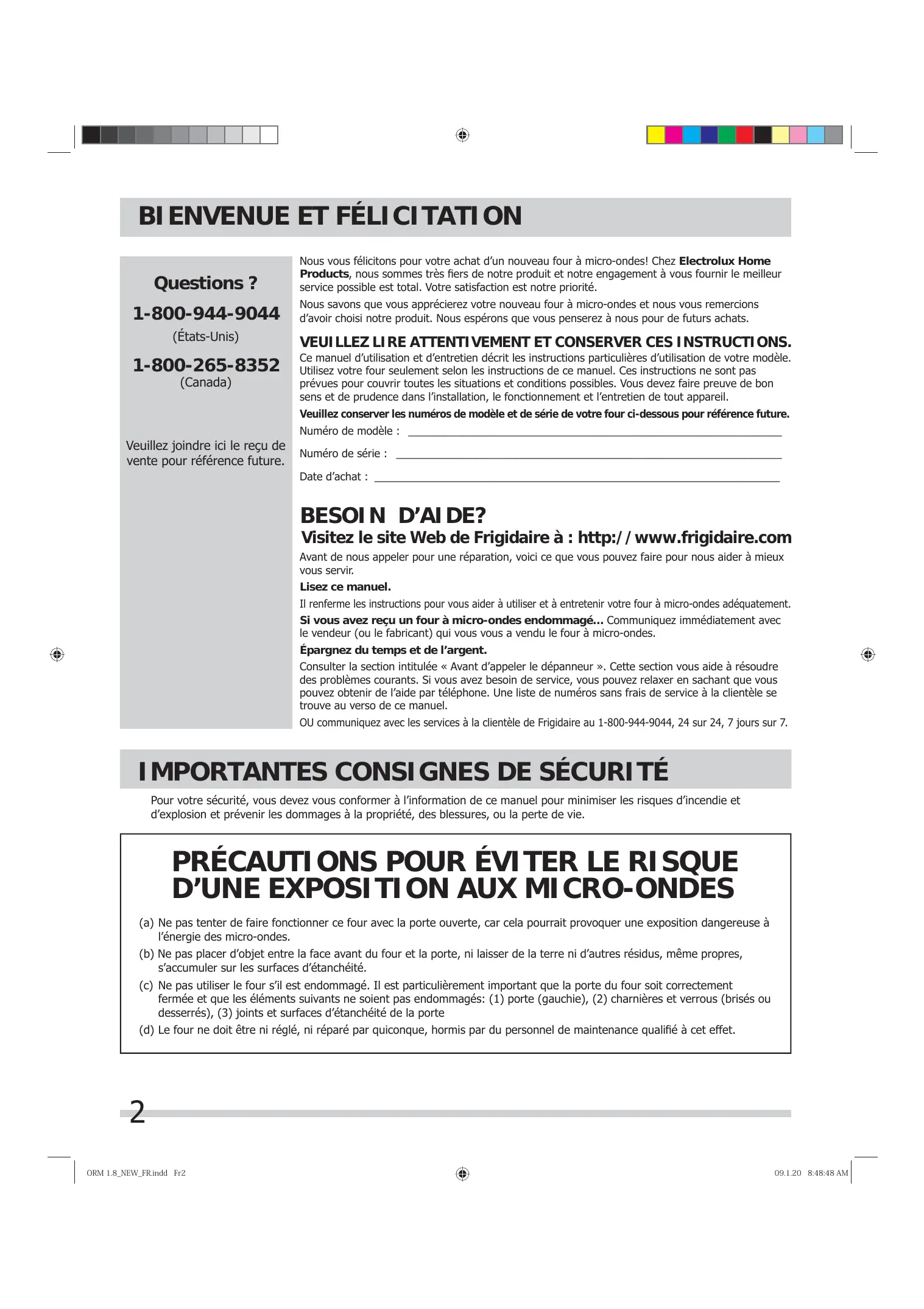 Nous vous félicitons pour votre achat d'un nouveau four à micro-ondes! Chez Electrolux Home Products, nous sommes très fiers de notre produit et notre engagement à vous fournir le meilleur service possible est total. Notre satisfaction est notre priorité.