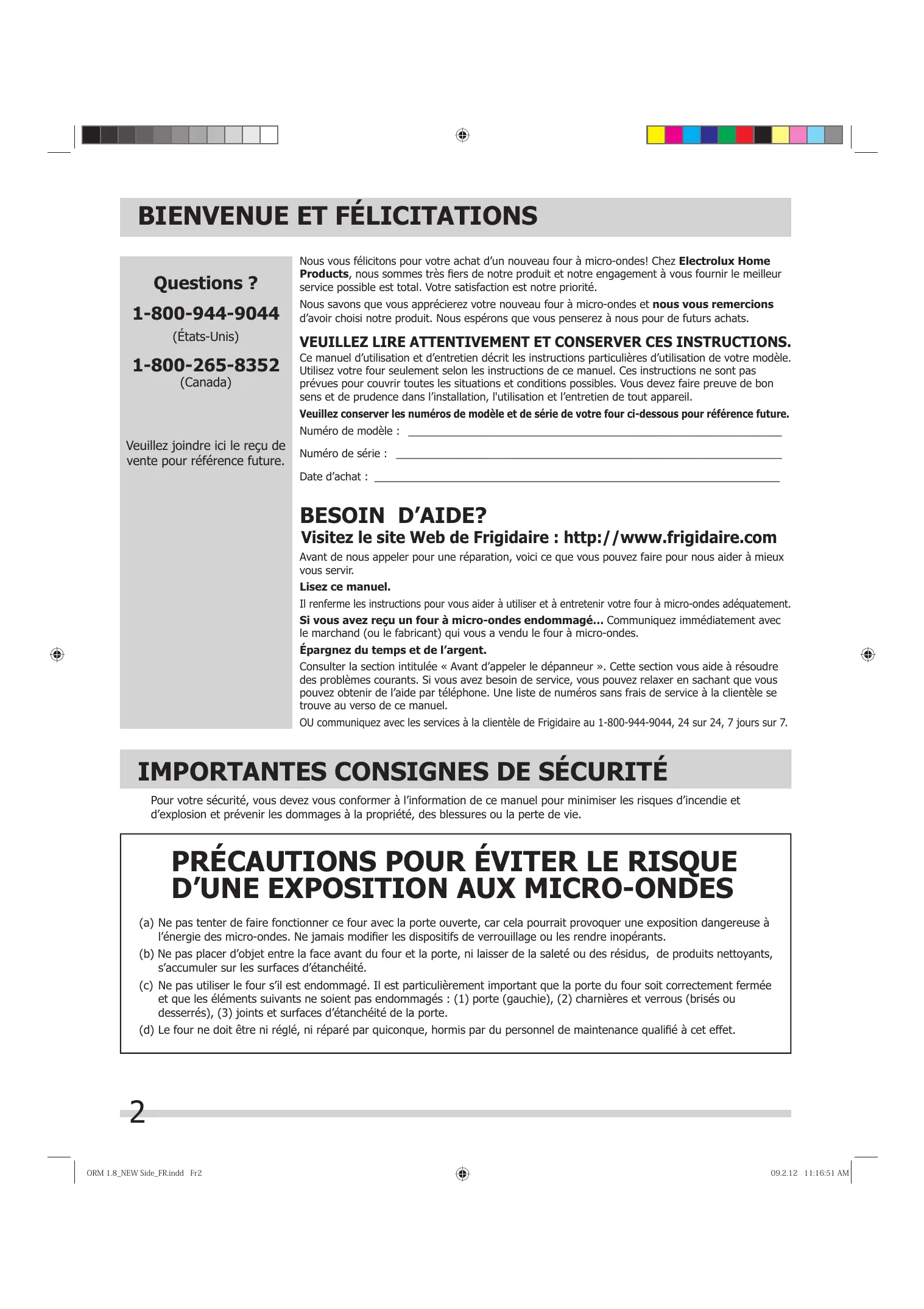 OU communiquez avec les services à la clientele de Frigidaire au 1-800-944-9044, 24 sur 24, 7 jours sur 7.