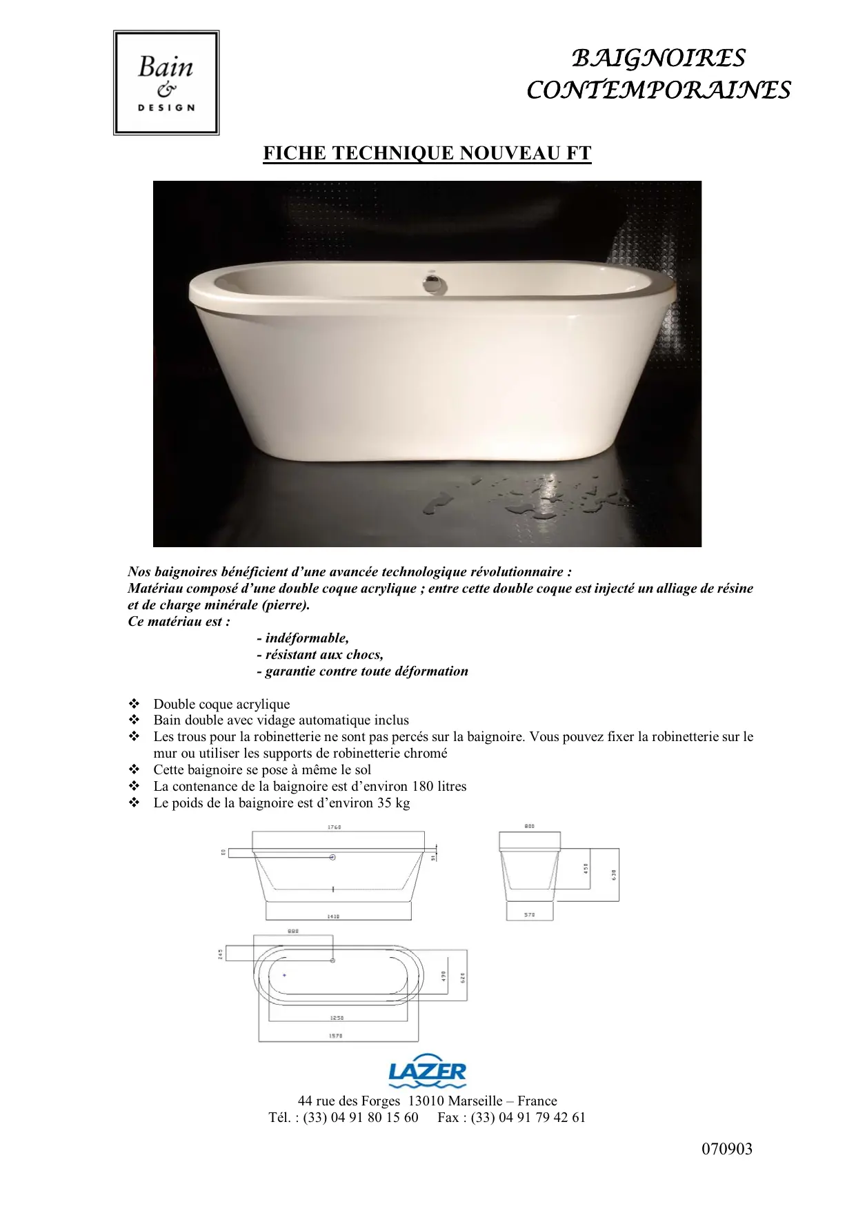 FT - Baignoire LAZER - Notice d'utilisation et mode d'emploi gratuit