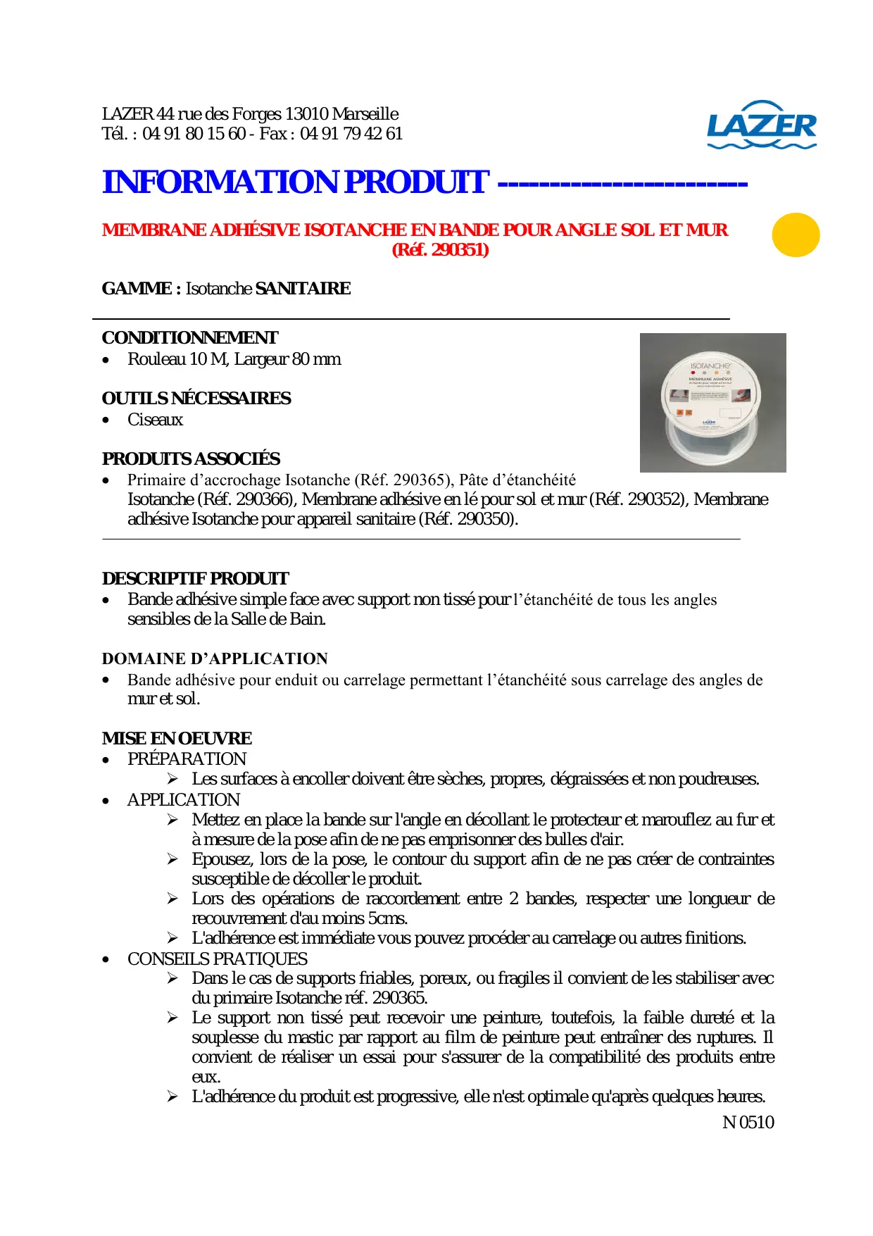 290351 - Matériau d'étanchéité LAZER - Notice d'utilisation et mode d'emploi gratuit