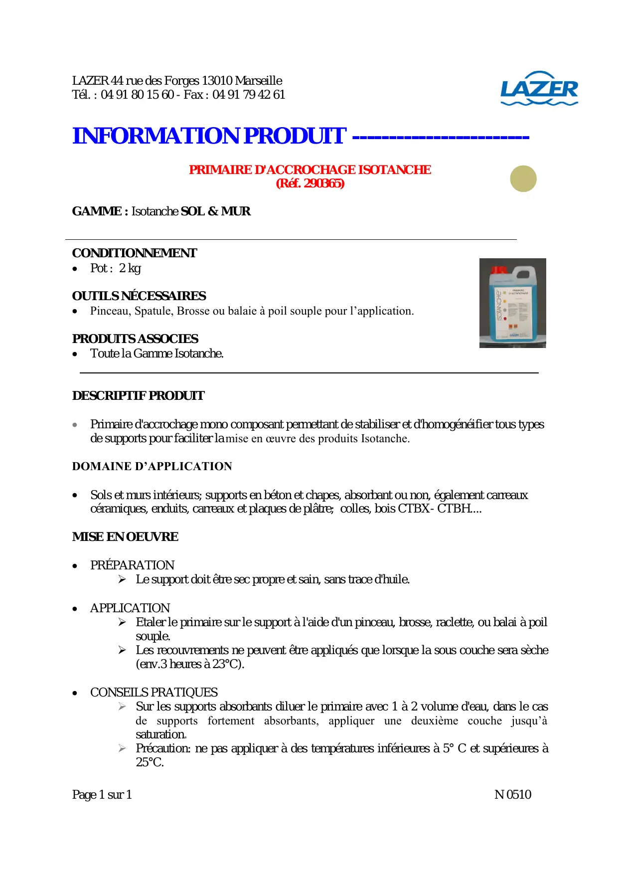 290365 - Produit d'entretien bâtiment LAZER - Notice d'utilisation et mode d'emploi gratuit