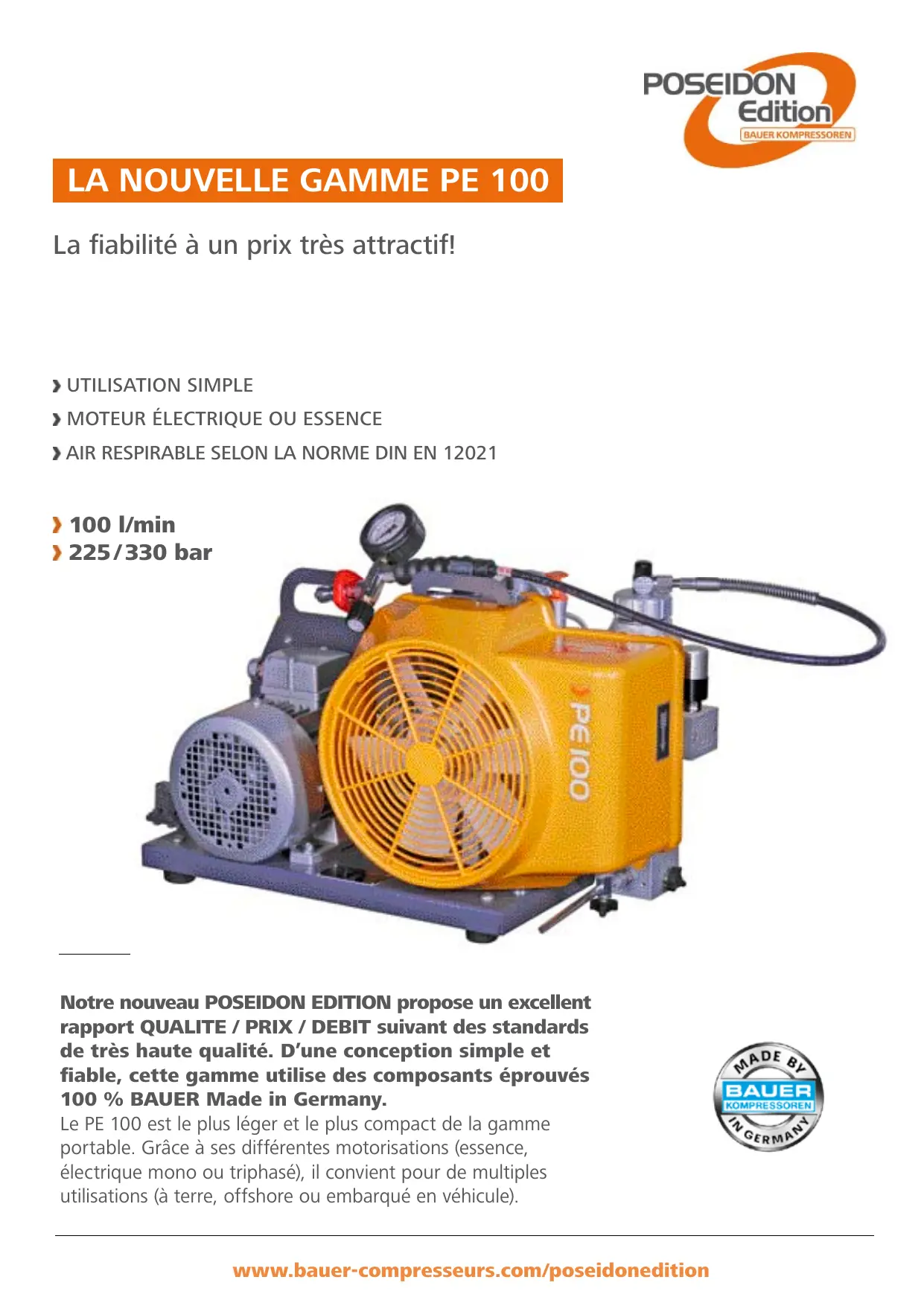 QUALITE ET SERVICE Le bloc du compresseur PE 100 est fabriqué par BAUER. Plus de