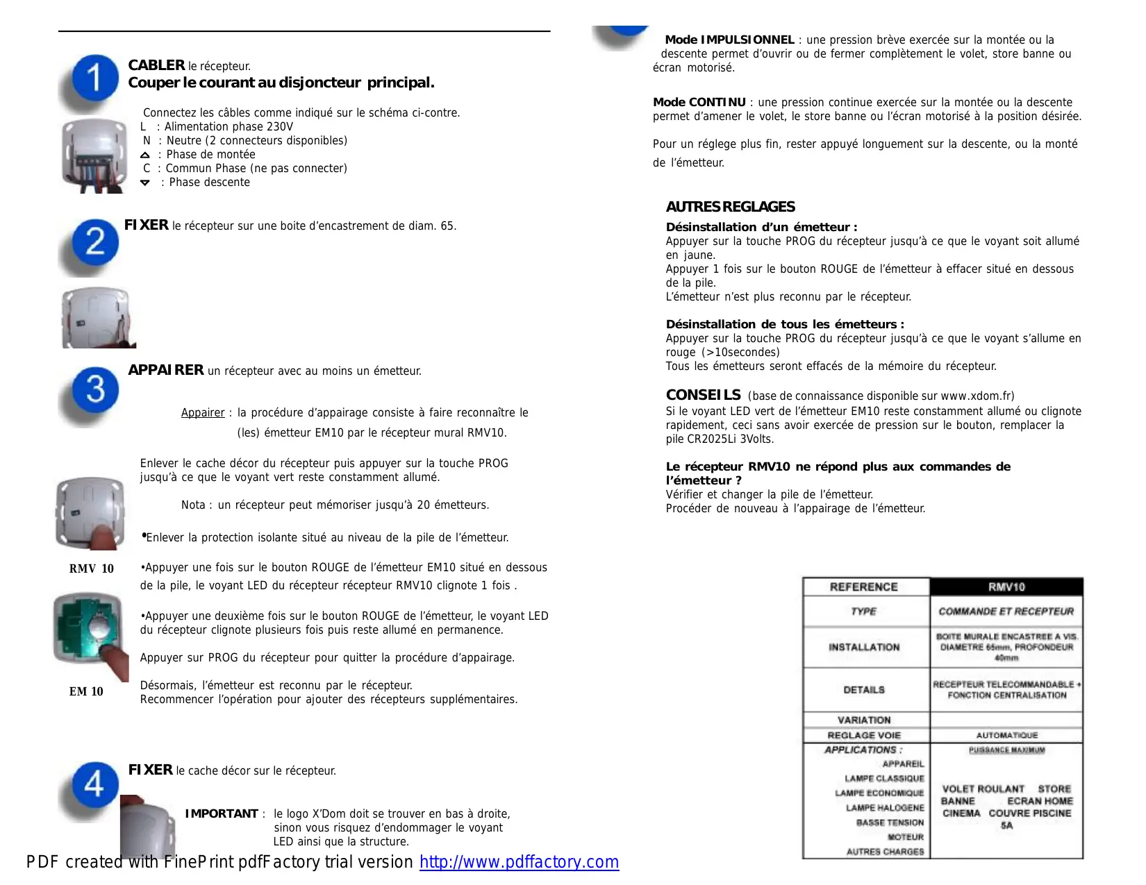 RMV10 - Télécommande et récepteur électronique X10 - Notice d'utilisation et mode d'emploi gratuit