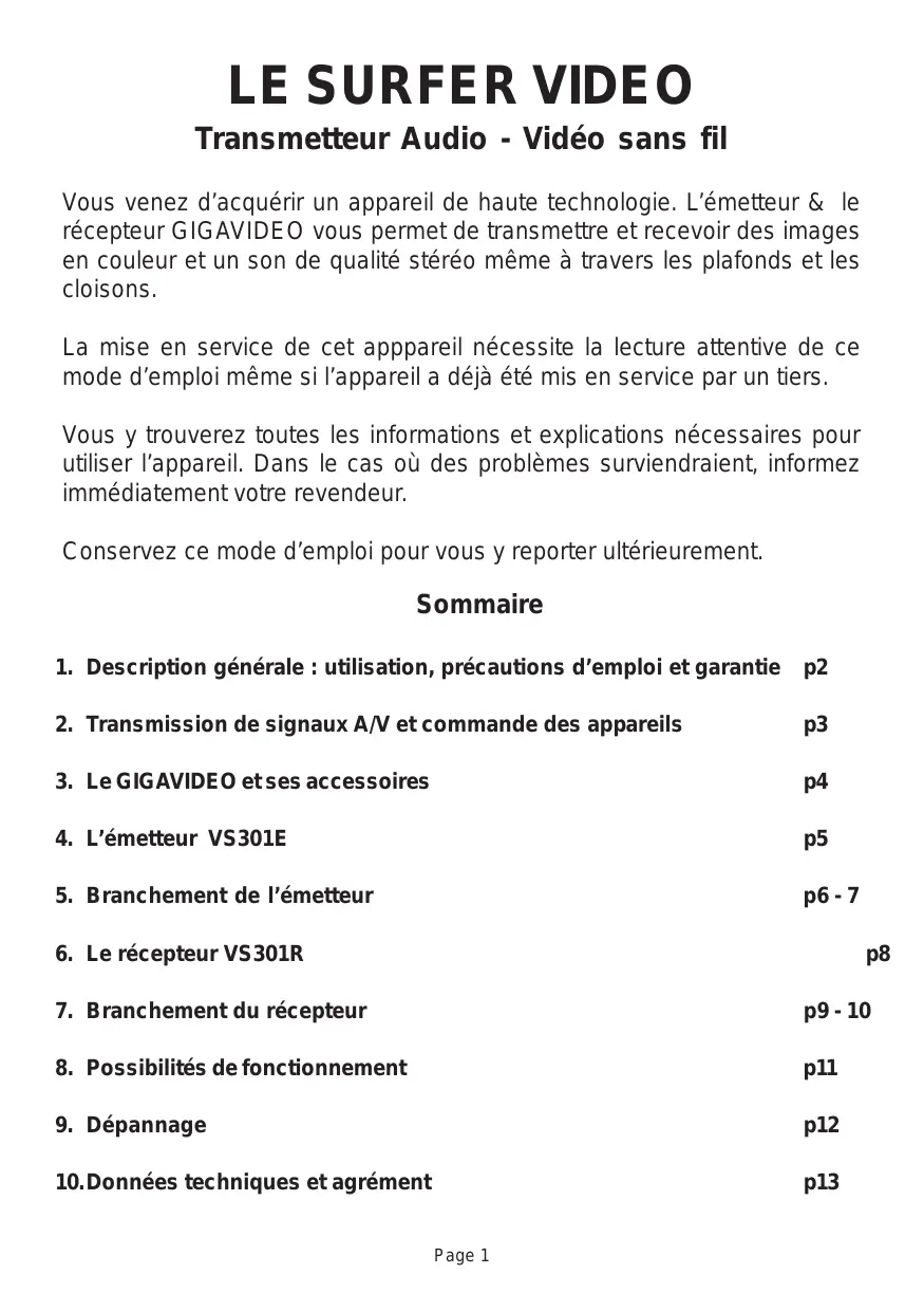 Vou venez d'acquérir un apparéil de haute technologie. L'émetteur & le récepteur GIGAVIDEO vous permet de transmettre et receivevoir des images en couleur et un son de qualité stéreo même à travers les plafonds et les cloisons.