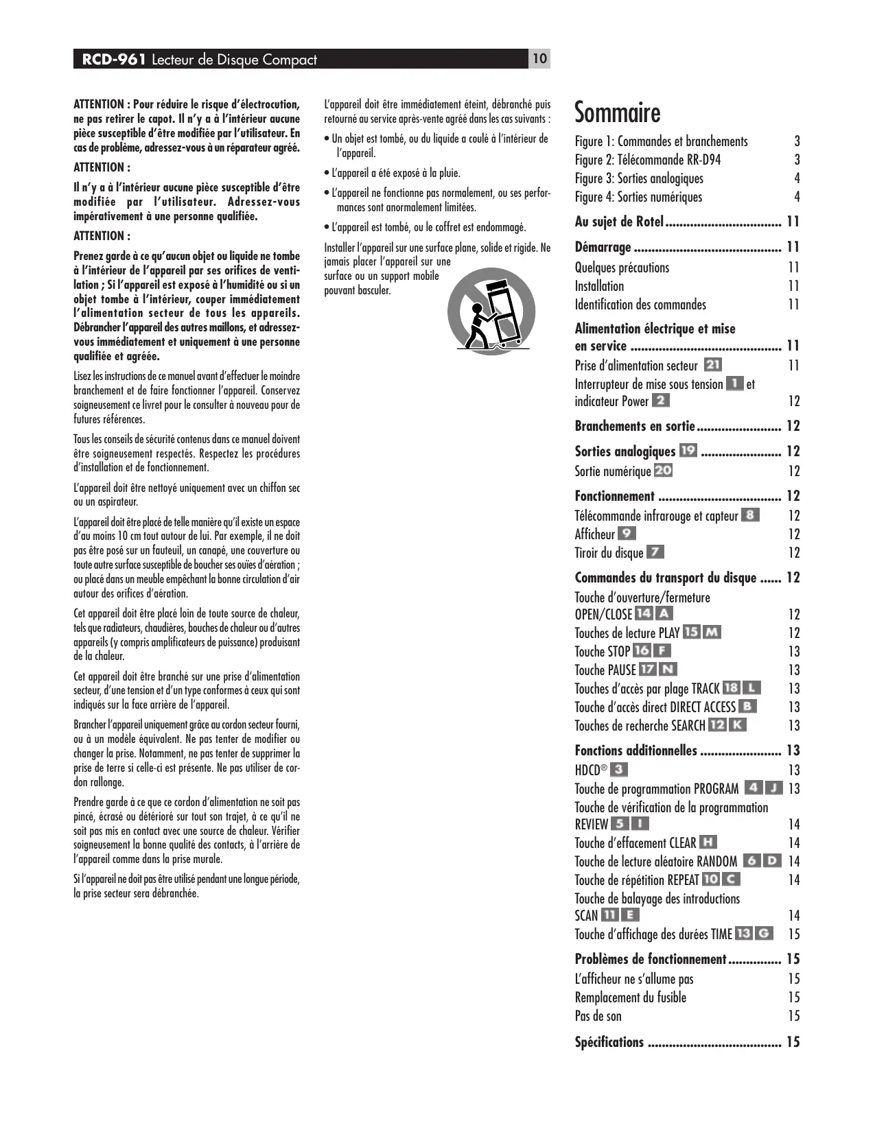 Au sujet de Rotel ................................. 11 Démarrage .......................................... Quelques précautions Installation Identification des commandes
