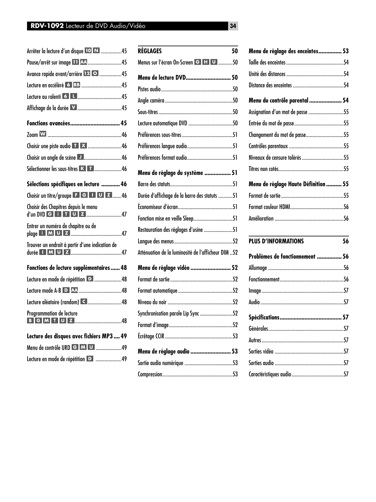 Problèmes de fonctionnement 56