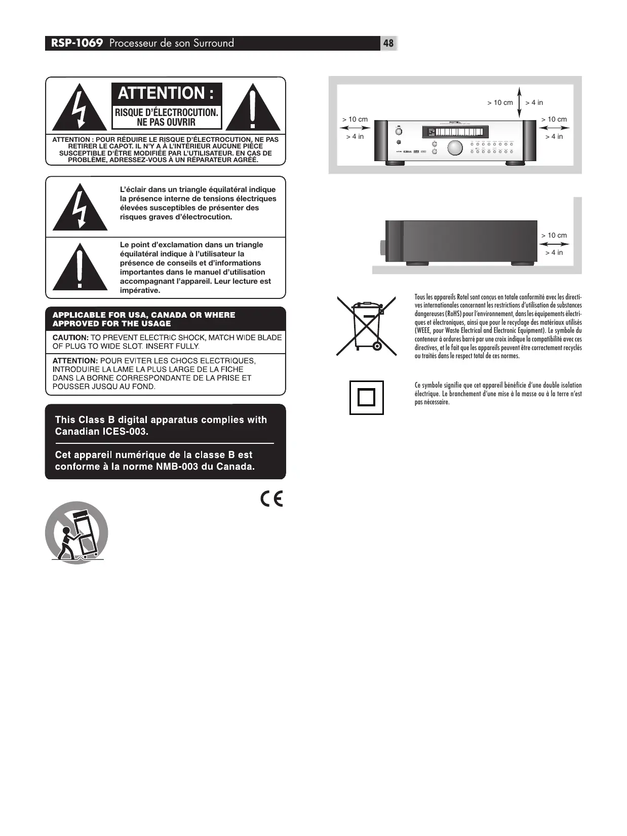 Retrouvez gratuitement la notice de l'appareil RSP-1069 ROTEL au format PDF.