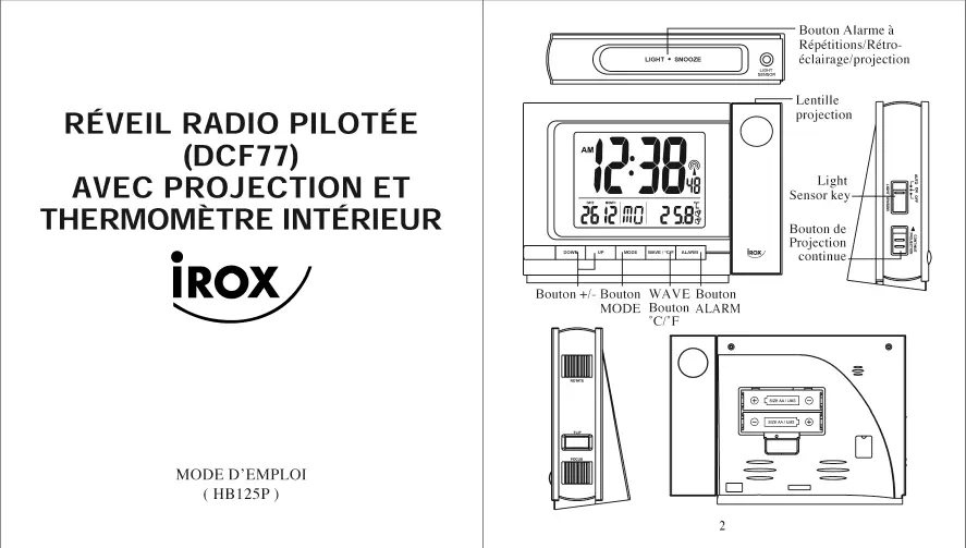 HB125P - Réveil radio IROX - Notice d'utilisation et mode d'emploi gratuit