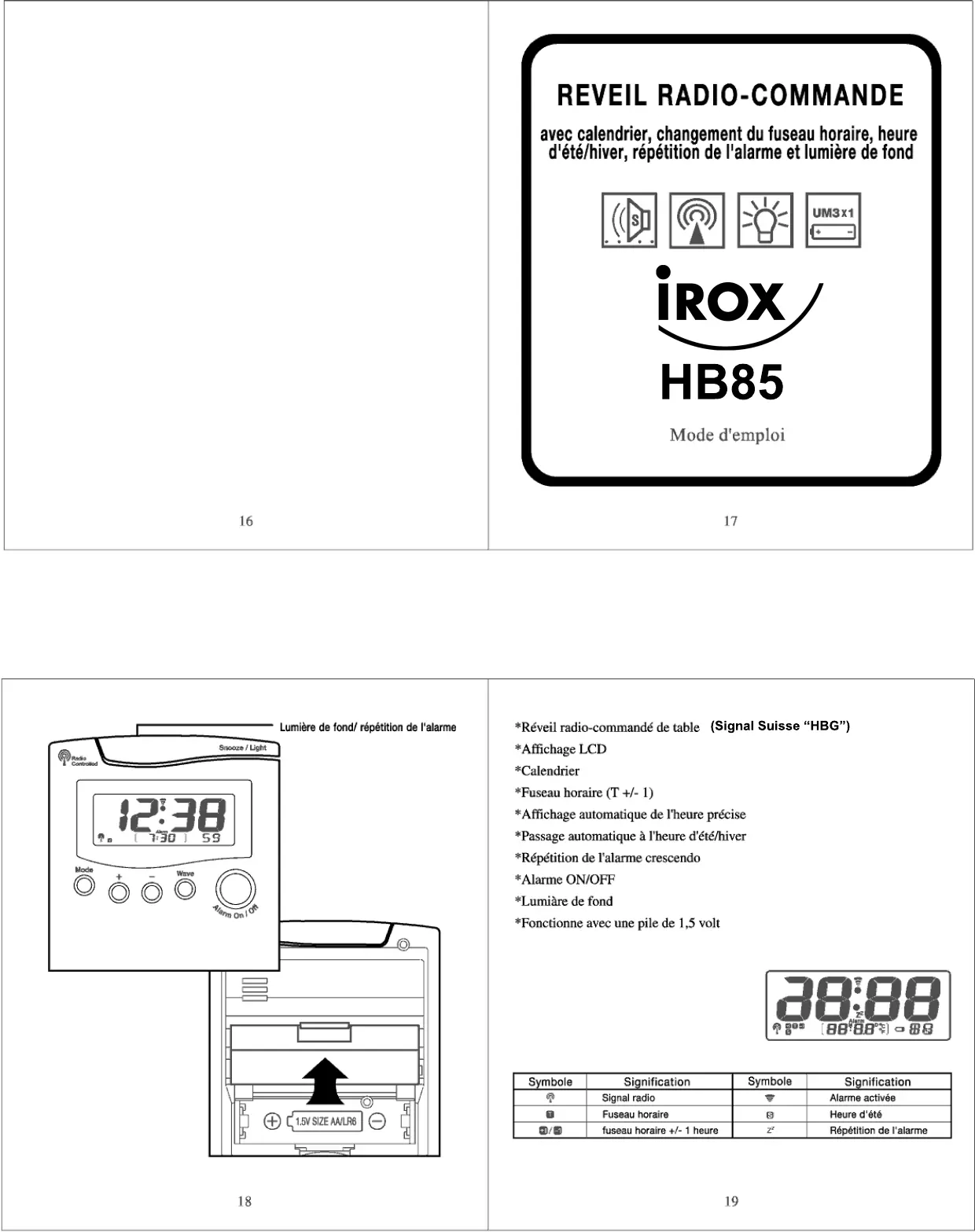 HB85 - Réveil électrique IROX - Notice d'utilisation et mode d'emploi gratuit