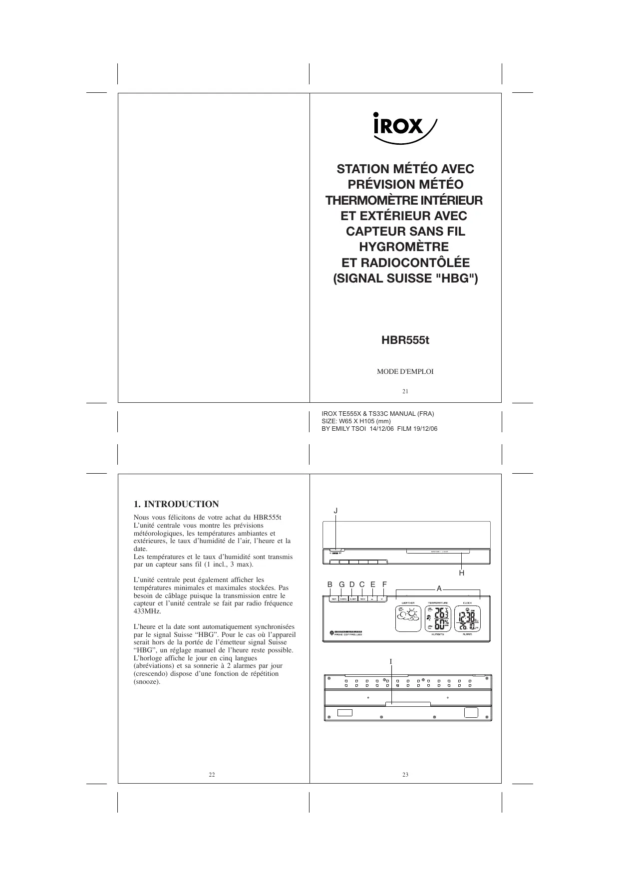 HBR555T - Station Météo IROX - Notice d'utilisation et mode d'emploi gratuit