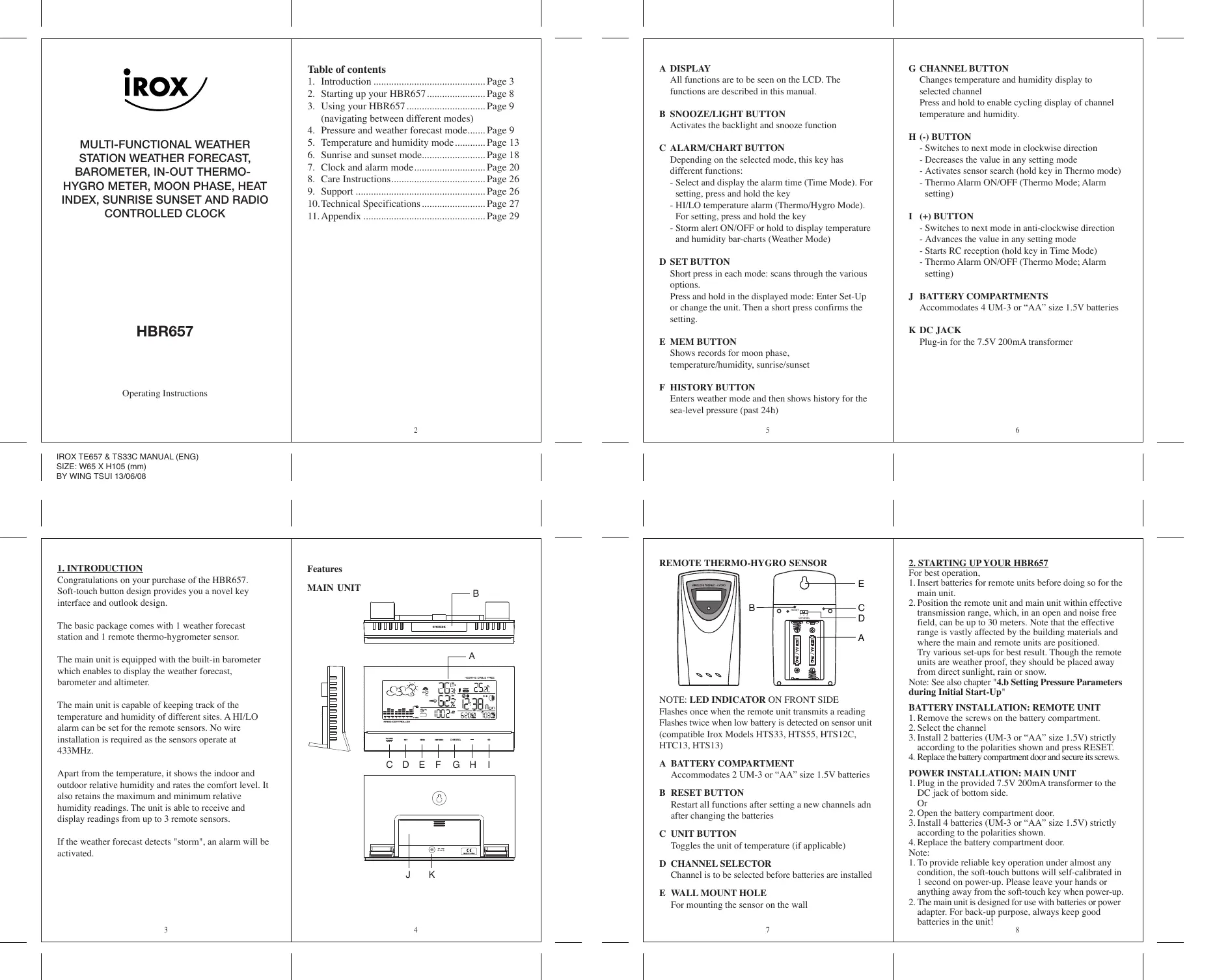 HBR657 - Station Météo IROX - Notice d'utilisation et mode d'emploi gratuit