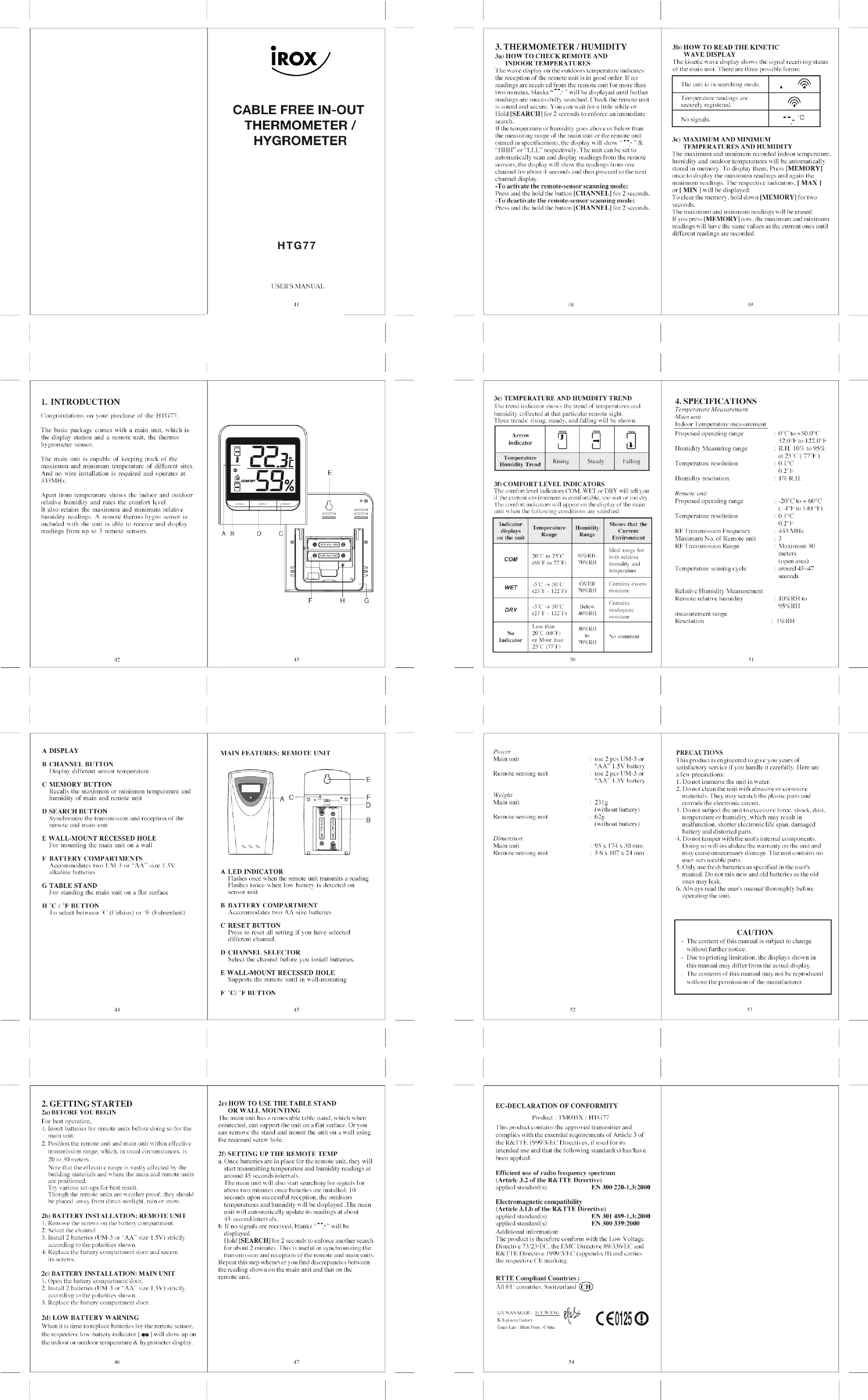 HTG77 - Thermomètre hygromètre IROX - Notice d'utilisation et mode d'emploi gratuit